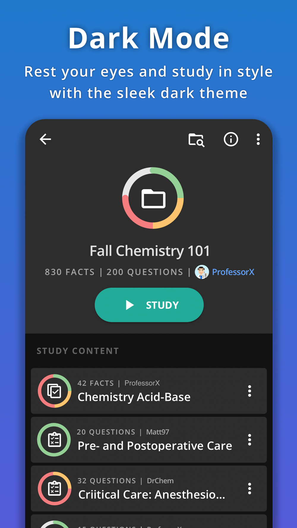 1) Study for free with community flashcards and practice questions, create your own, or ace your exams with professional Study-Packs authored by test-prep experts.