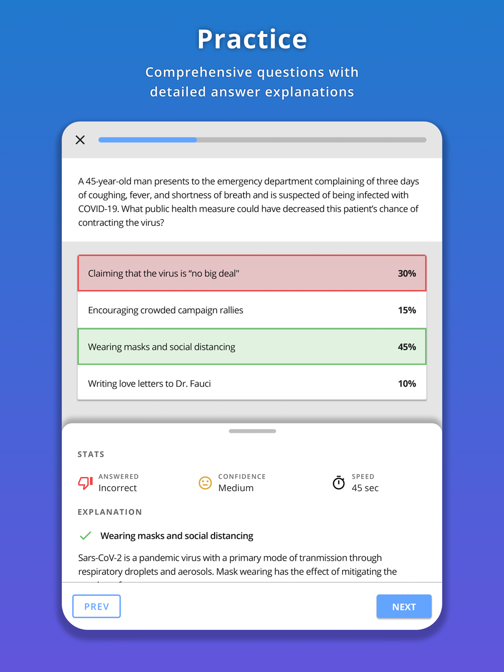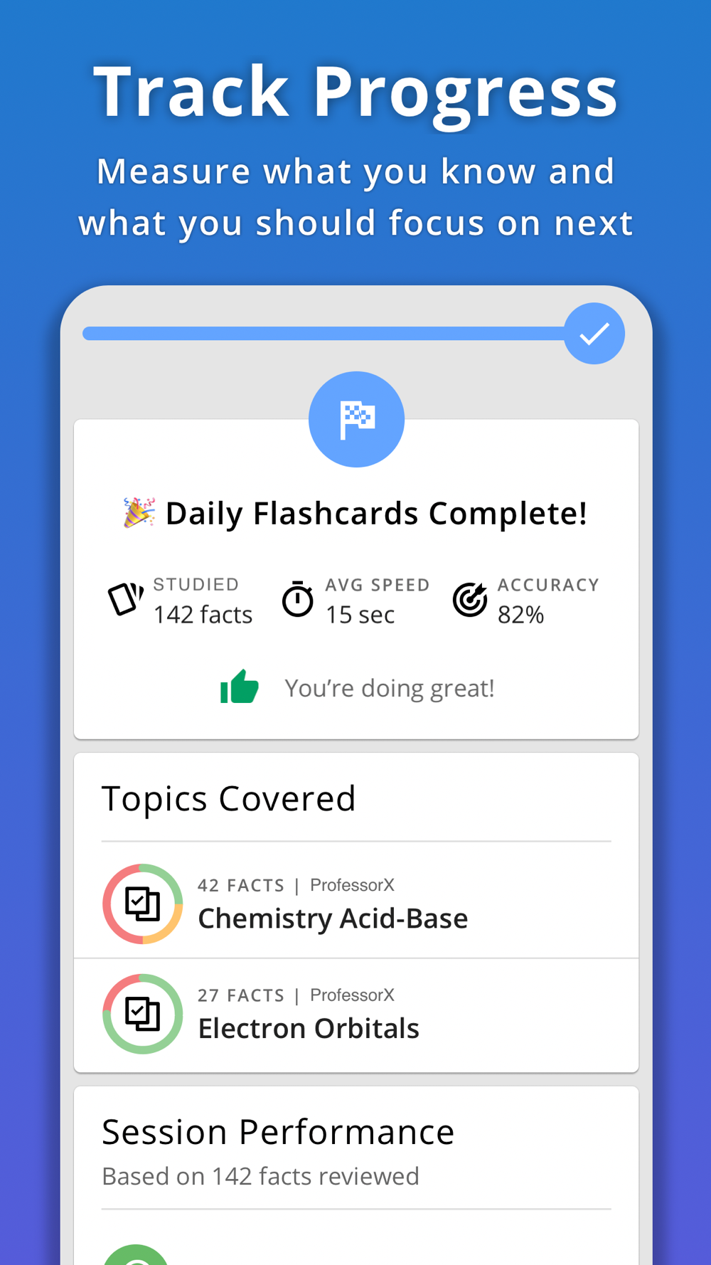 2) Create a study schedule by choosing a goal date and how much time you have per day to study. You’ll then get a simple, daily stream of learning tasks to complete. Memorang uses artificial intelligence and spaced repetition to calculate what you need to review next and what you’re at risk of forgetting. There’s no better way to save time and stay on track!