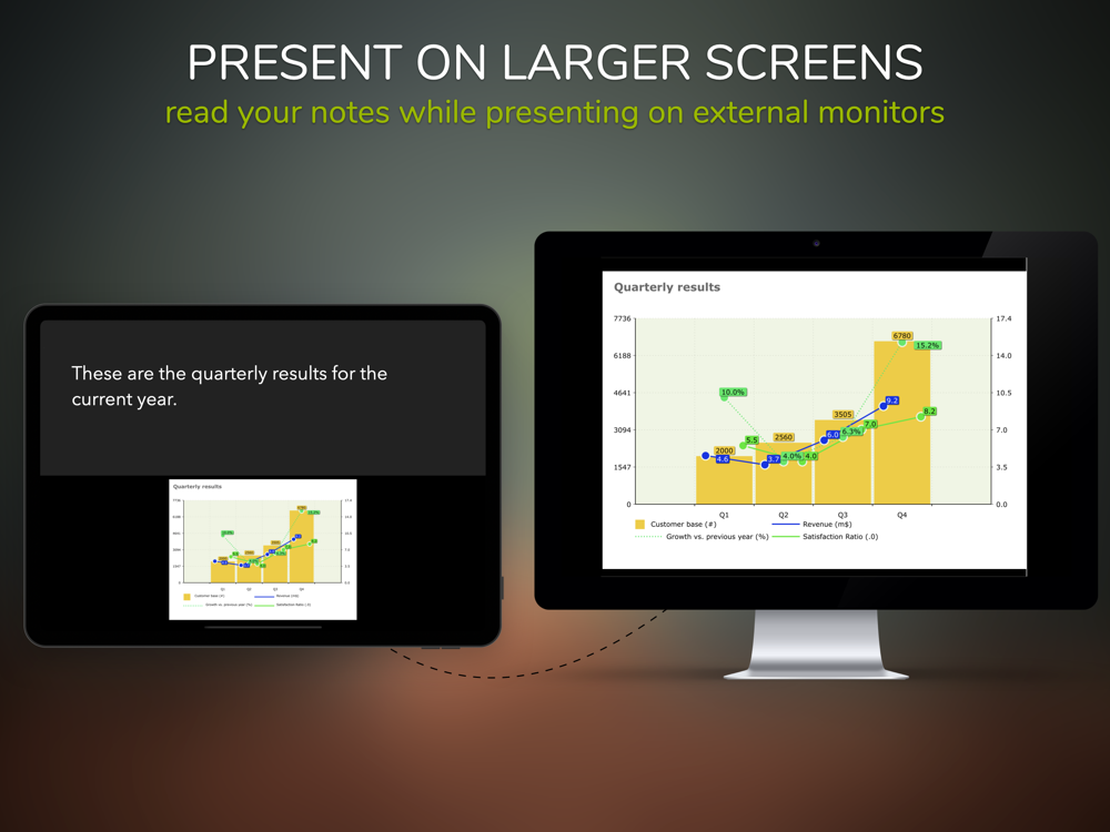 > Presentar un resumen ejecutivo a su equipo o en una pantalla externa.