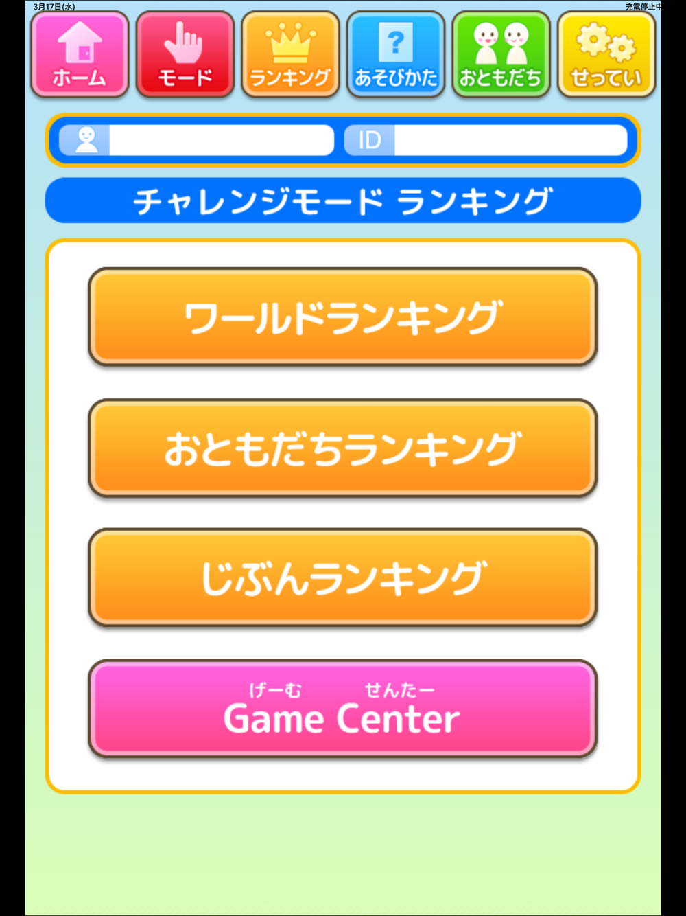 チャレンジモードのランキングは、タイムの早い順になります。