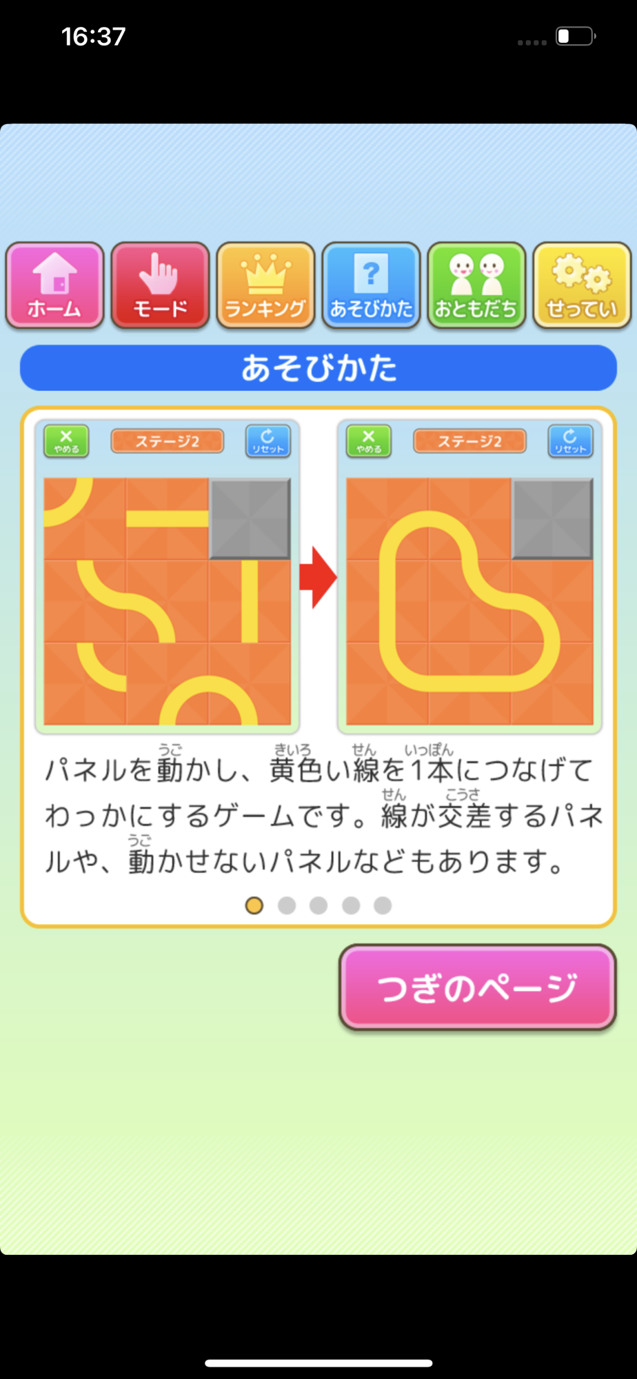 黄色い線が1本のわになるようにパネルを動かして遊ぶアプリです。