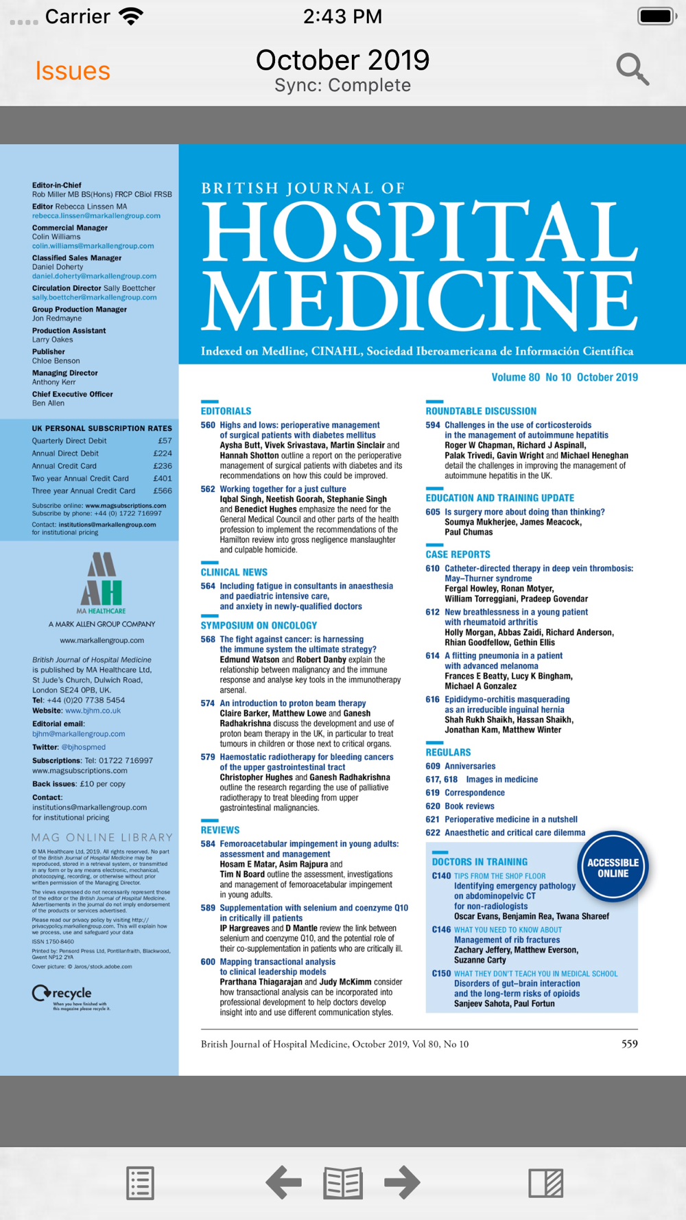• Sync back issues to your device for offline reading (requires wi-fi).