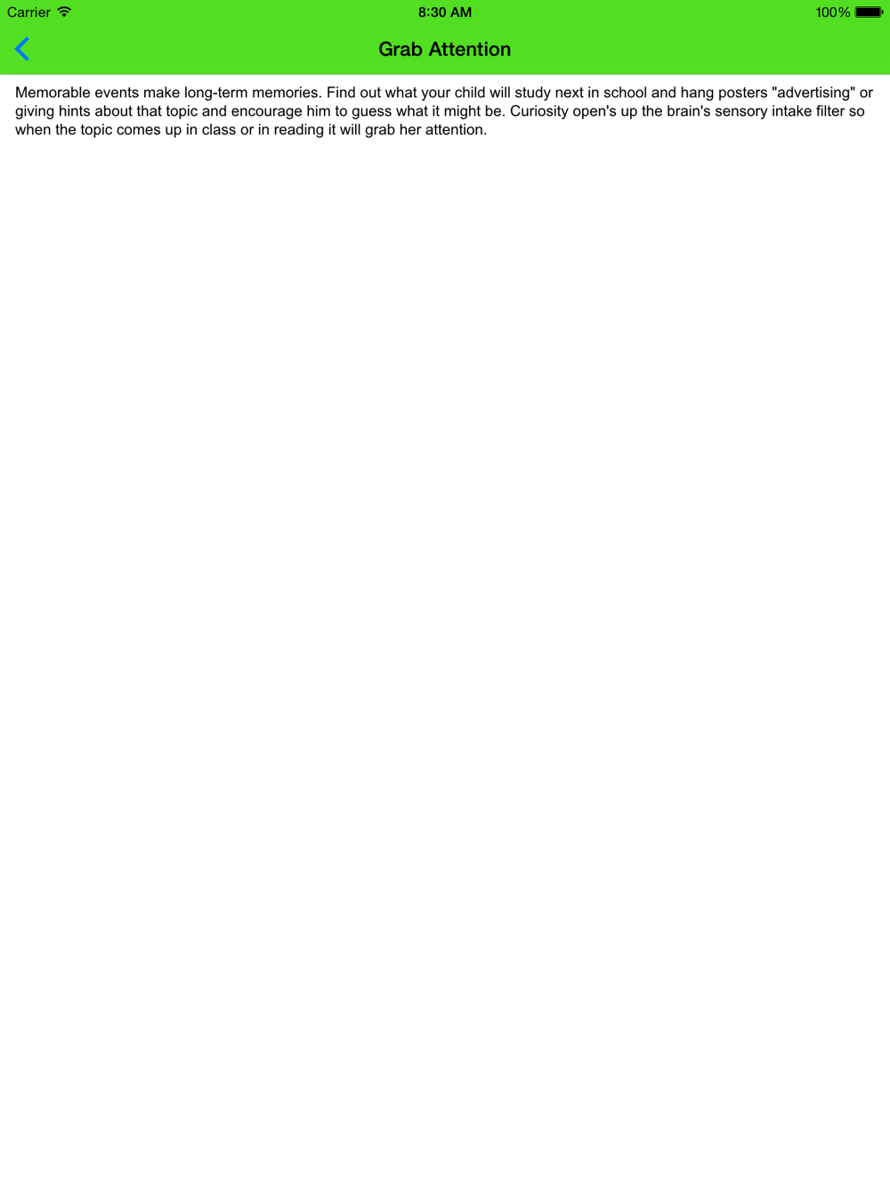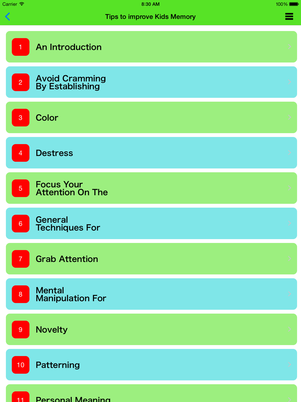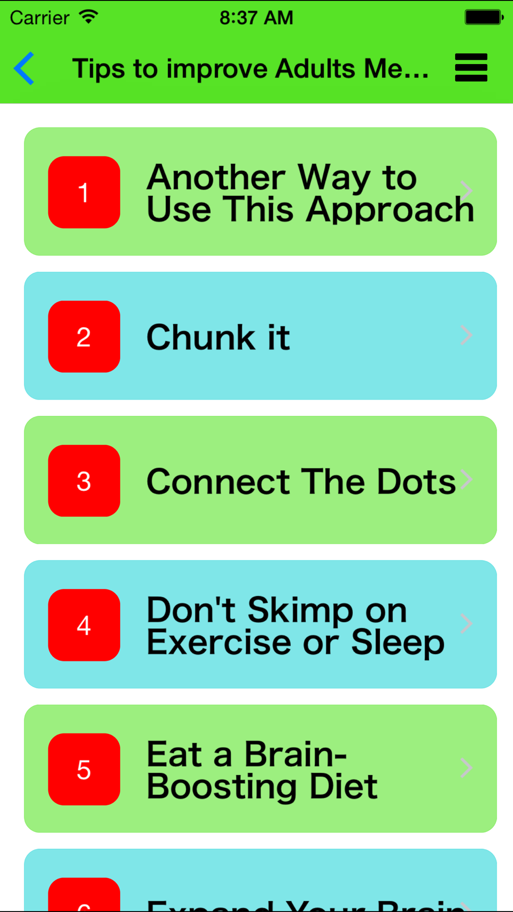 Excellent memory improvement tips and tricks included in the app.