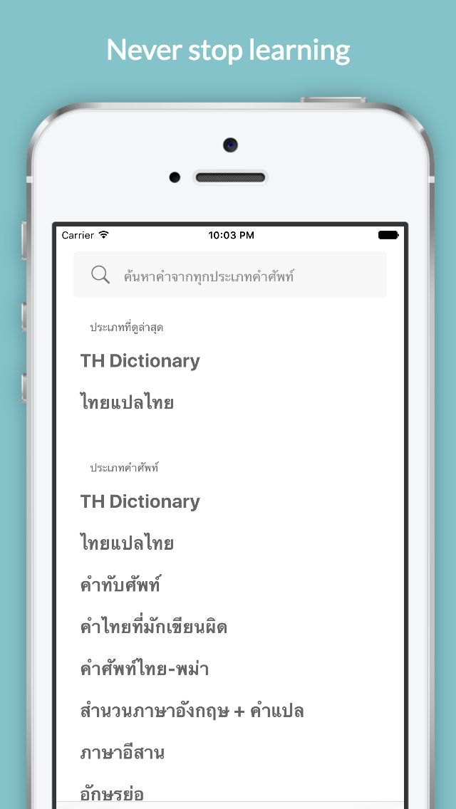 นั่นหมายความว่าไม่ว่าจะเป็นกลุ่มคำไหน ภาษาใด ก็จะถูกรวบรวมไว้ในระบบคลังคำศัพท์ให้คุณได้ศึกษา ค้นคว้า และใช้อ้างอิง ทั้งนี้ระบบคลังคำศัพท์มีประโยชน์กับทุกคนทุกอาชีพทุกเพศทุกวัยทั้งวัยทำงานและนักเรียนนักศึกษา โดยสามารถเข้าใช้งานได้จาก iOS ได้ทันทีเพียงเลือกคำศัพท์ตามแอปพลิเคชันที่ต้องการ