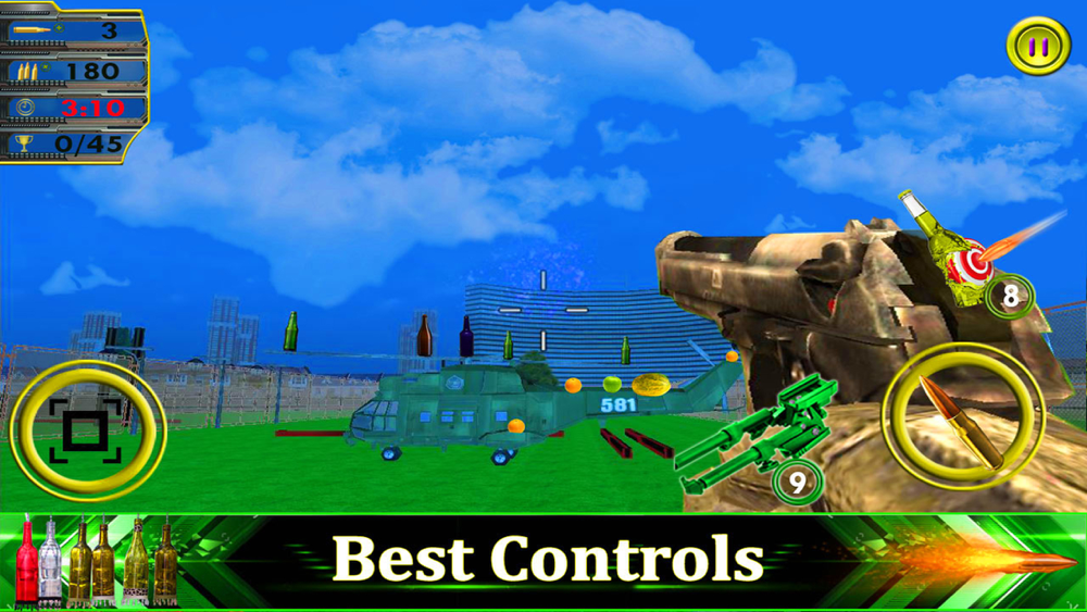 best shooting games ensure to give you real fun in this bottle shooting master 2017 game. please comment and review for improvement of the game.