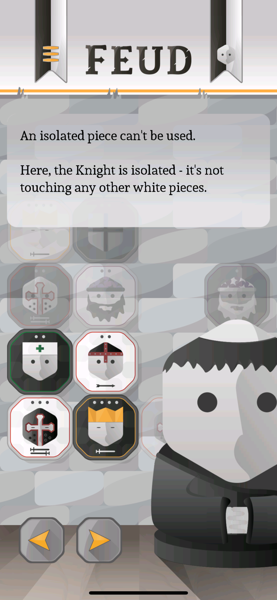 OK, not so much like chess. What you can expect is a highly condensed little abstract strategy game which is easy enough to learn but quite tricky to get good at. The AI still beats us sometimes. The computers are winning. Please get good at Feud so we can beat them.