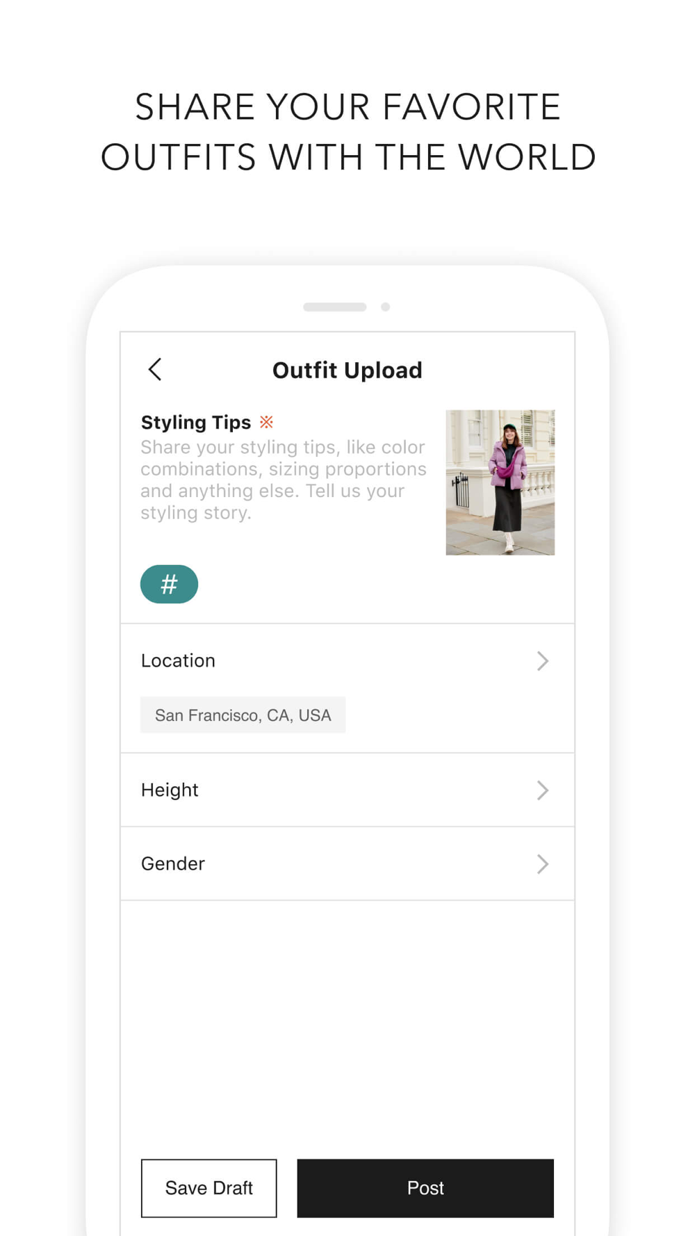 Search by combining multiple keywords such as brand, season and trend words (ex. “UNIQLO outfit” “dress outfit” “fall outfit”)