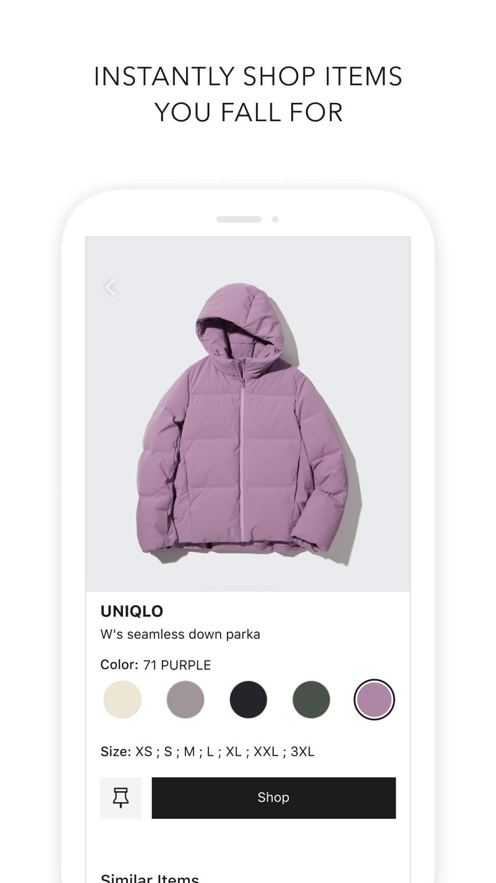 Similar products from UNIQLO and GU are displayed when you snap a photo and can be purchased right away at our online store.