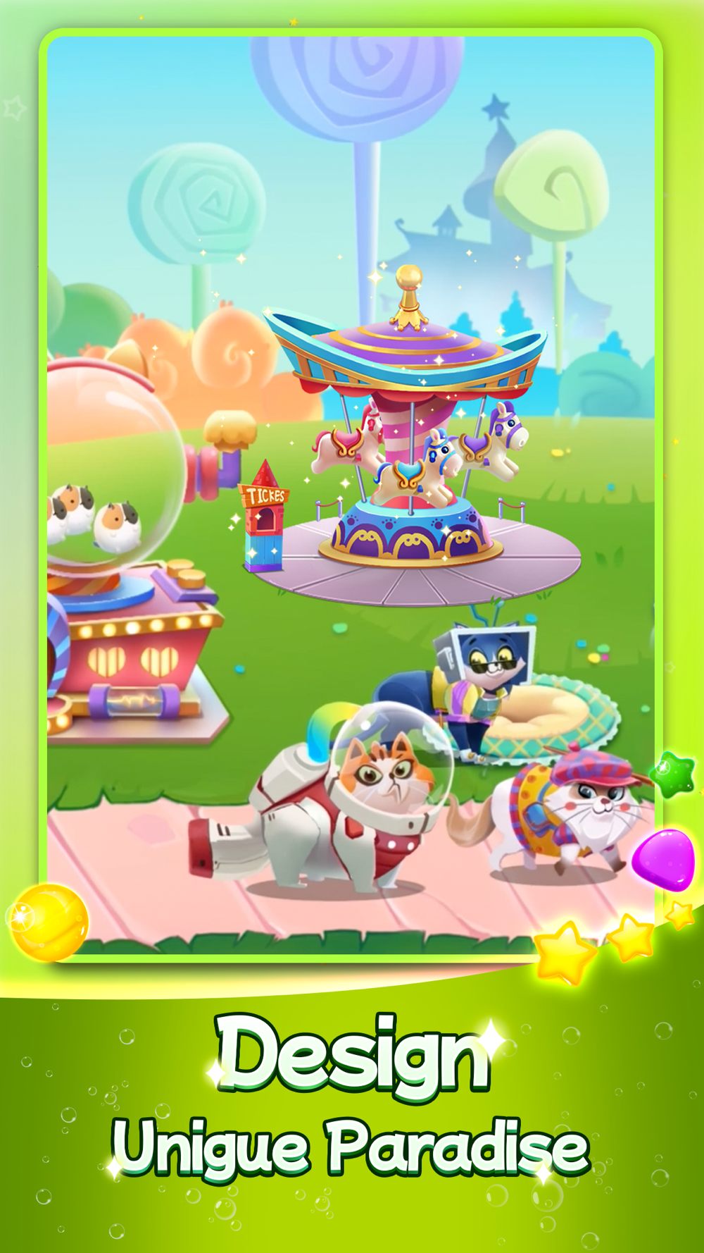Win gold coins, collect decorations, dress up your cute cat and build your own cat park.