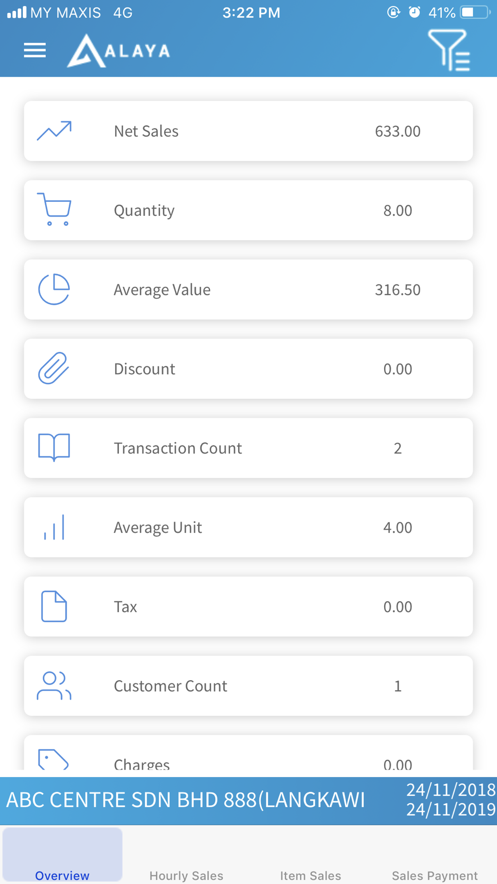 IRS Alaya brings you the convenience to see your business sales in a glance.