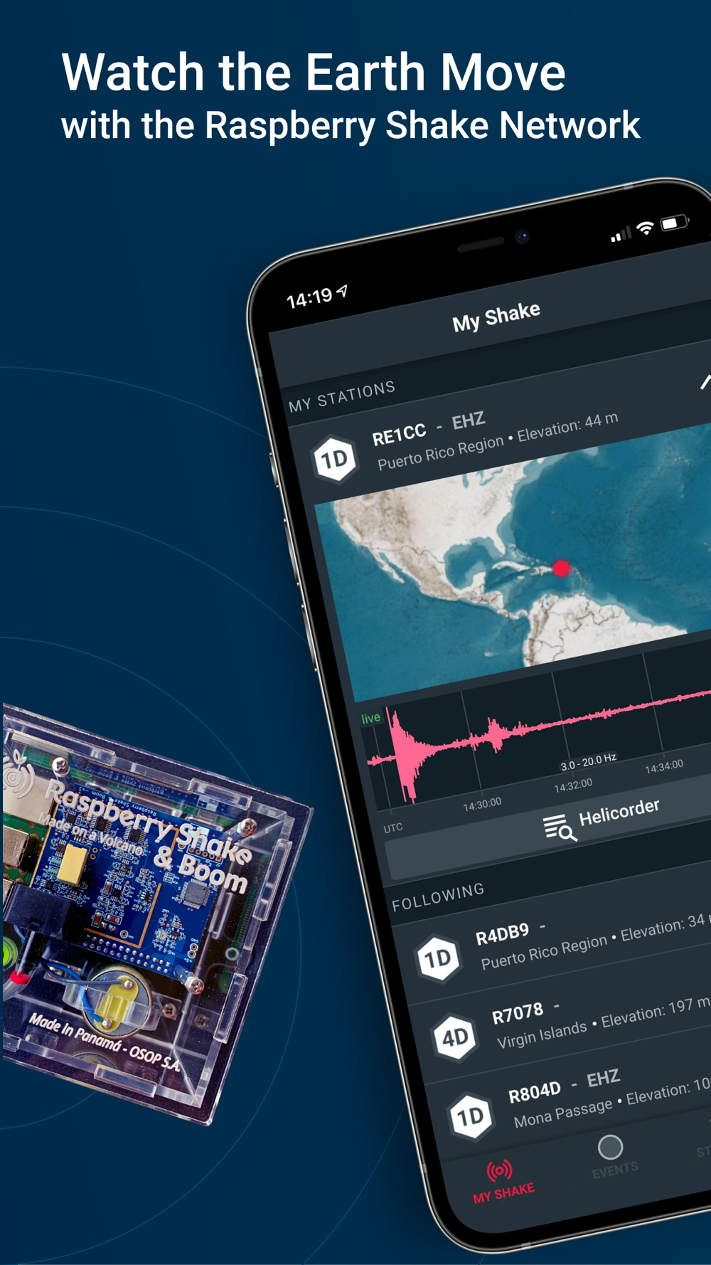 Connect your phone to the largest citizen-powered earthquake monitoring network on the planet for the latest quake activity. Watch in real-time as earthquakes roll in on your own Raspberry Shake seismograph, if you have one, and other Shakes you can easily follow within the app.
