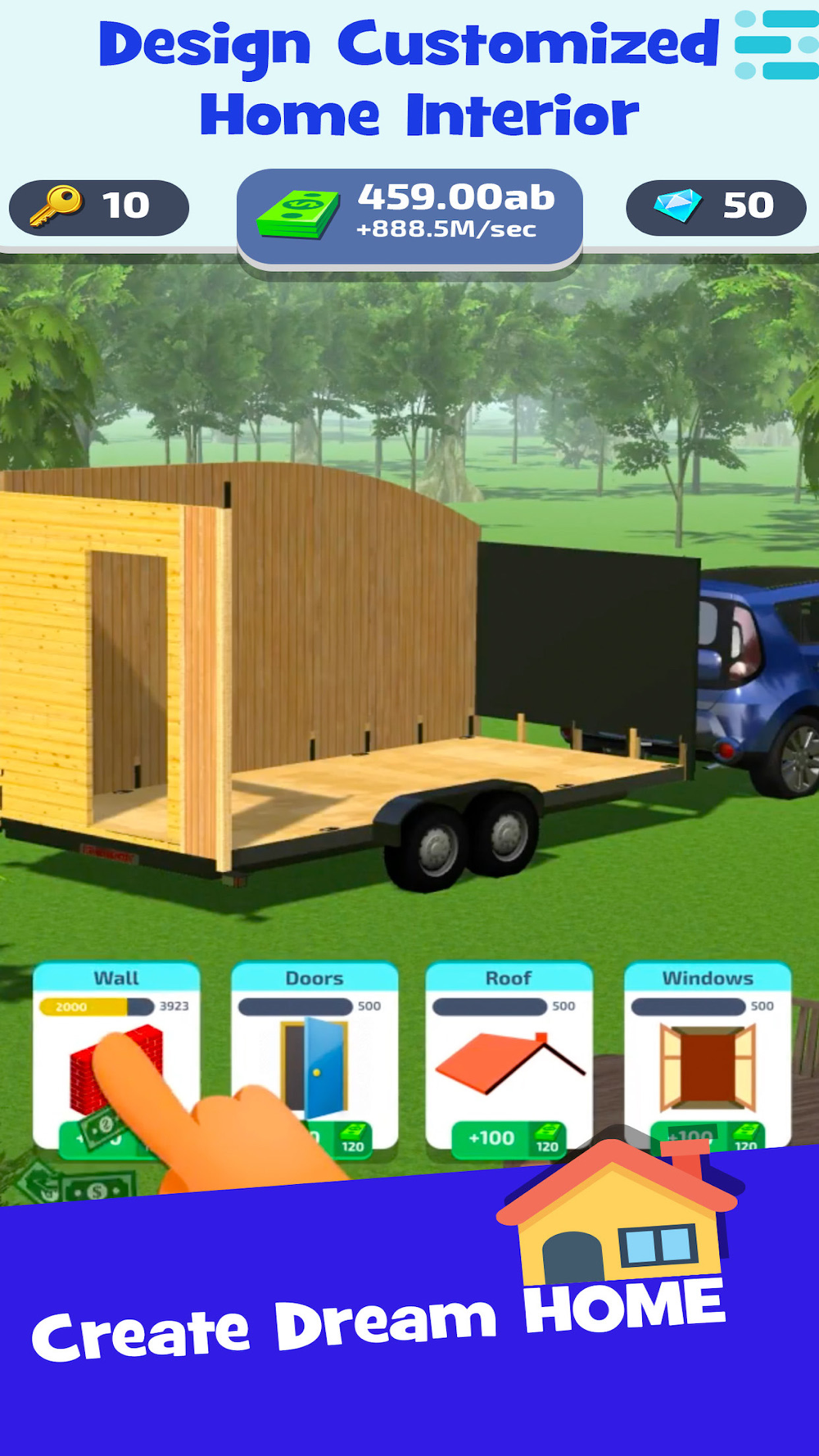 Are you dreaming of a new, luxurious, tropical resort? Or maybe a cozy little apartment for two? Are mobile homes your preference? What about a lovely country cottage? Create the house of your dreams with Idle Home! Anything is possible. Put your creativity into work to build your dream home from scratch! Choose the location, the style, the interior and exterior designs with our house-styling simulation game!