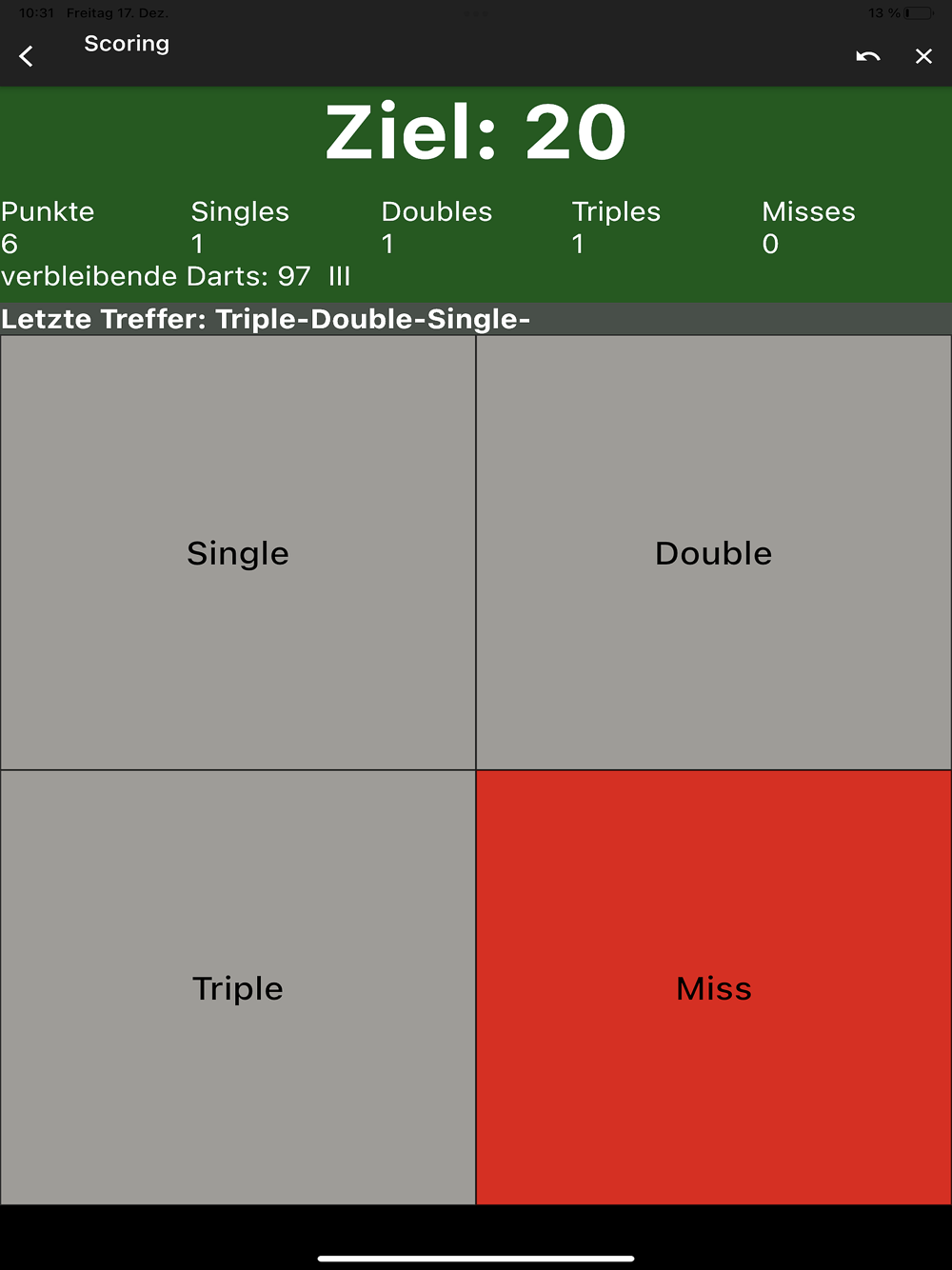 Keep track with your progress in miscellaneous variants and bring your gameplay to the next level by detecting your problems and optimizing your play. My Dart Training supports you in doing so.