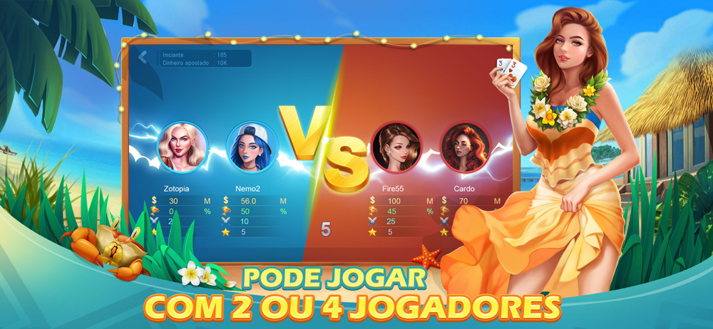 Trazendo a tradição do jogo de carta Tranca no Brasil, a Zingplay traz a melhor versão online gratuita de Tranca para aproveitar em todos os momentos e em qualquer lugar com seus amigos. Além disso, neste jogo DE TRANCA você pode escolher entre mesas de 2 ou 4 jogadores online e interagir com os oponentes através de mensagens e emotes divertidos.