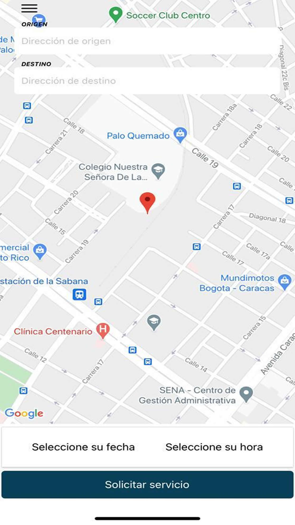 Aplicación para transporte en Colombia, y para todo tipo de usuario que desee adquirir nuestro servicio de transporte, pudiendo consultar el histórico de servicios, servicios agendados, calificar al conductor, ver en tiempo real la ubicación del vehículo, etc.