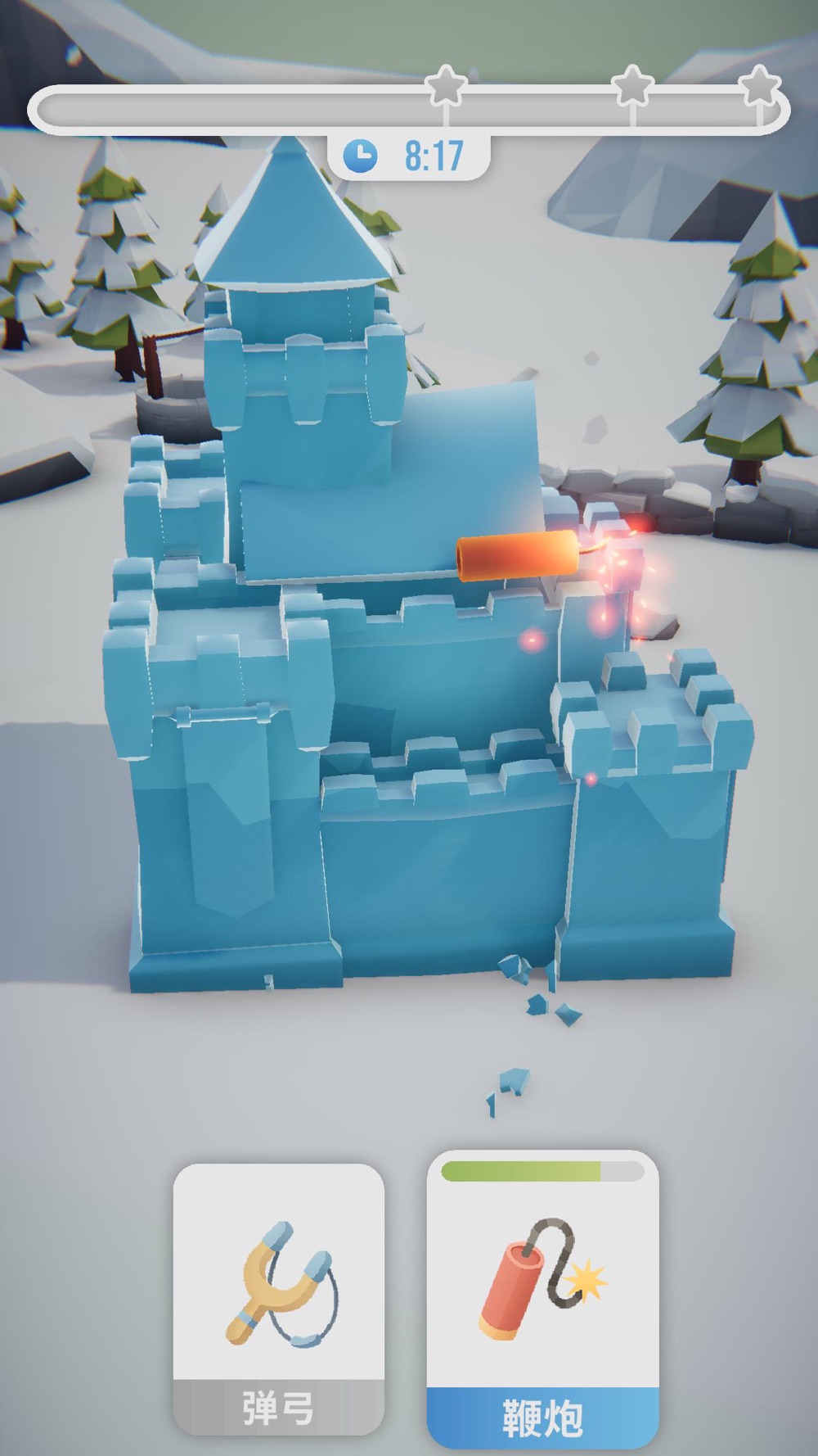 使用各种武器,尽情破坏吧!在规定时间内,尽可能破坏冰雕,获得丰厚的奖励,解锁更多武器与道具。