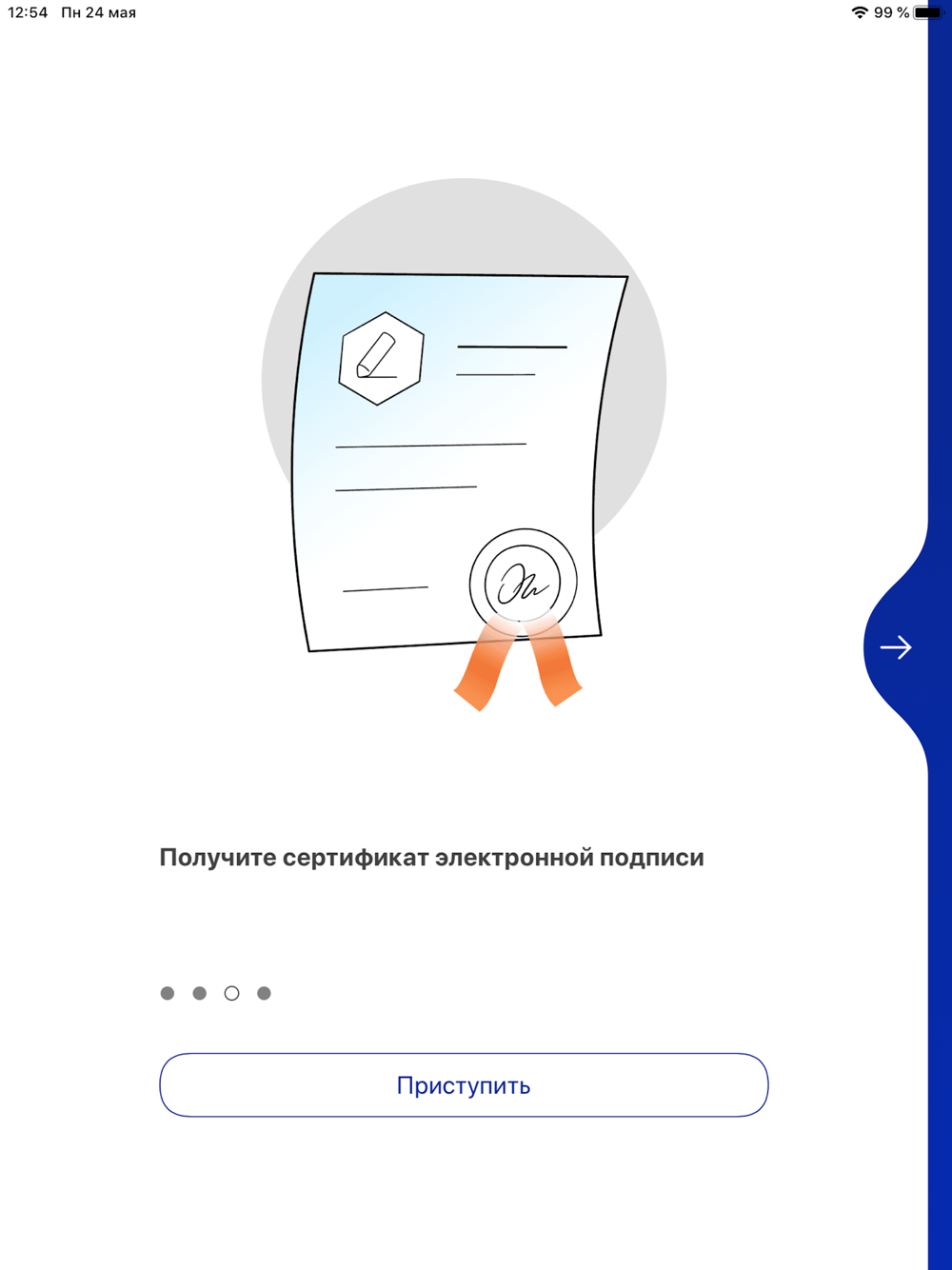 Для старта получения квалифицированного сертификата в приложении необходимо, чтобы в приложение был направлен документ для подписания соответствующим видом подписи.