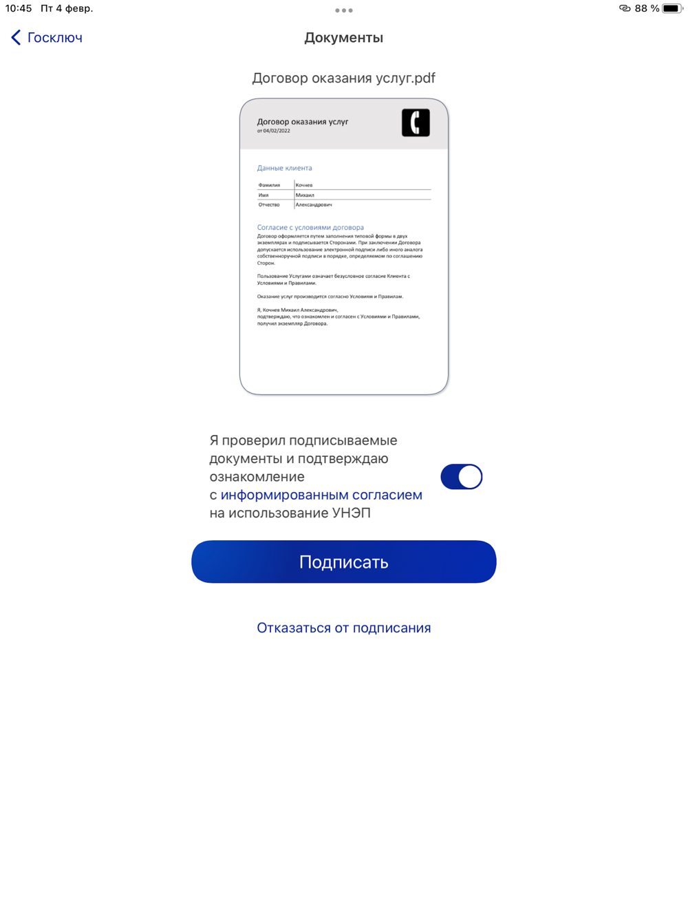 В приложении Госключ каждый пользователь, имеющий подтвержденную учетную запись на Госуслугах, может бесплатно получить сертификат и сформировать усиленную квалифицированную или неквалифицированную электронную подпись (УКЭП или УНЭП).