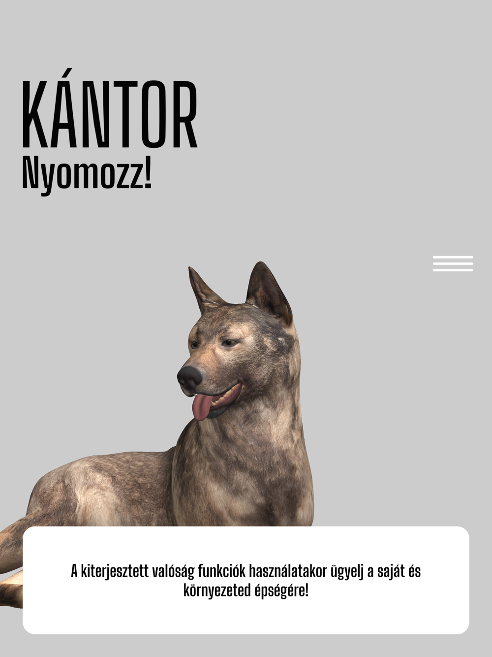 A kiterjesztett valóság segítségével megelevenedik előttünk Kántor, a nyomozókutya, akivel együtt indulhatunk a sorozatból jól ismert bűntények felderítésére.