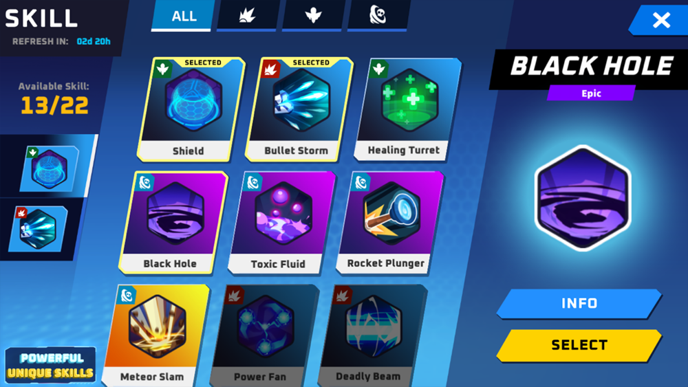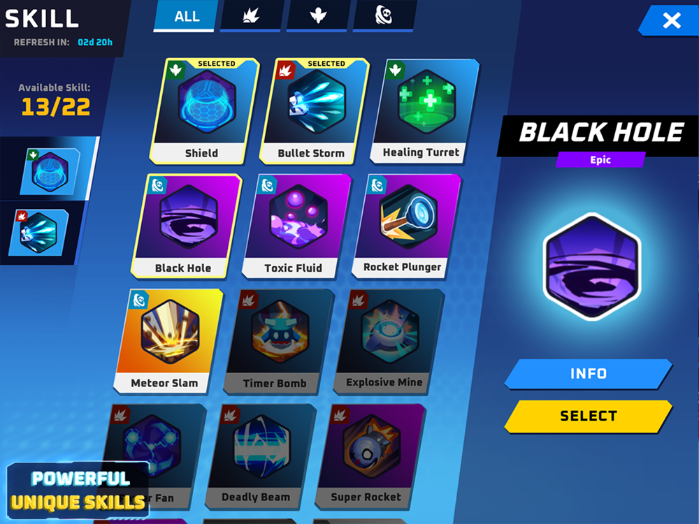 - Equip your heroes with a wide selection of skills, aside from their signature abilities – creating more possible combinations and strategies to survive on the battlefield. They are categorized into 3 distinctively different skills sets: