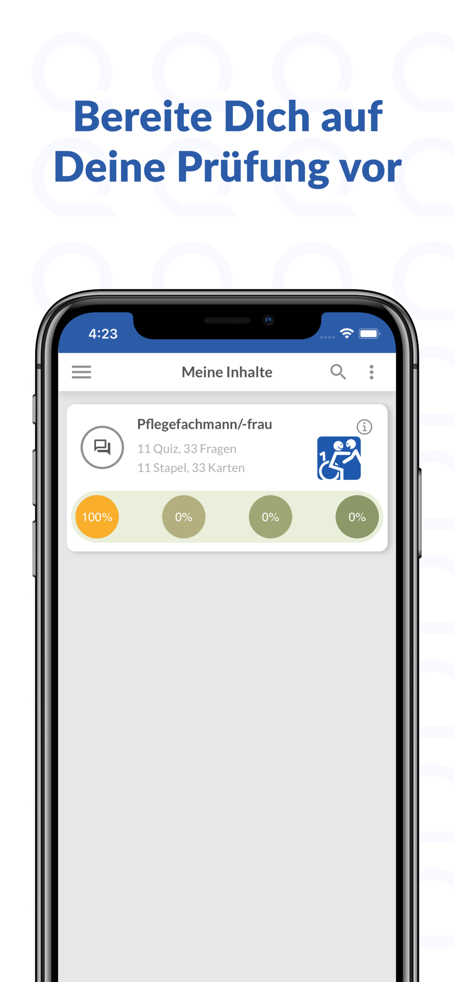 Bereite Dich optimal auf Deine Prüfungen in der Pflege vor! In dieser Lern-App findest Du grundlegende Prüfungs- und Lerninhalte für alle angehenden Pflegefachfrauen und Pflegefachmänner zu verschiedenen Bereichen der generalisierten Pflegeausbildung.