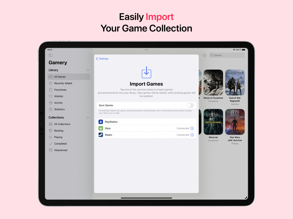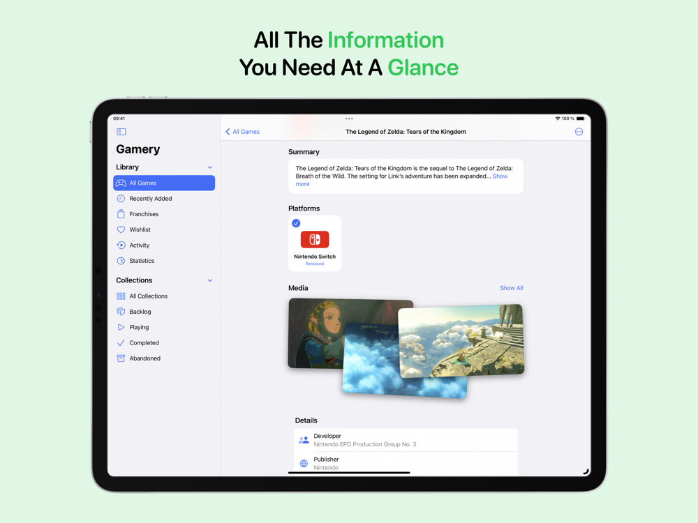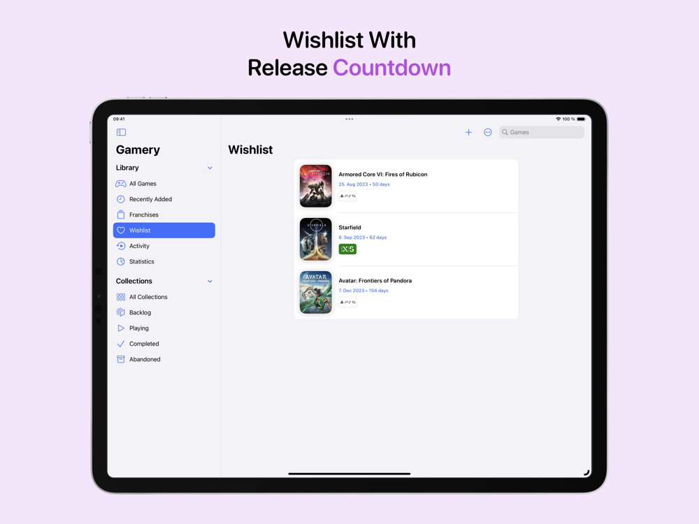 Introducing Gamery, the ultimate gaming companion that lets you manage your video game library like never before! With Gamery, you can organize your games with collections, track your achievements, and keep up with upcoming releases with the integrated wishlist across all your devices.