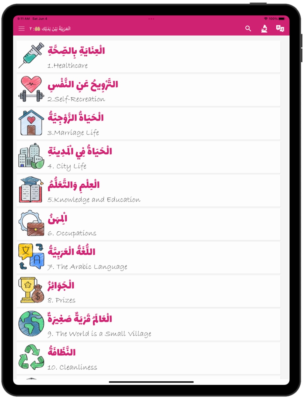 Significantly Boost your Arabic Conversation Skills and Vocabulary with a wide Array of Everyday Topics and Situations.