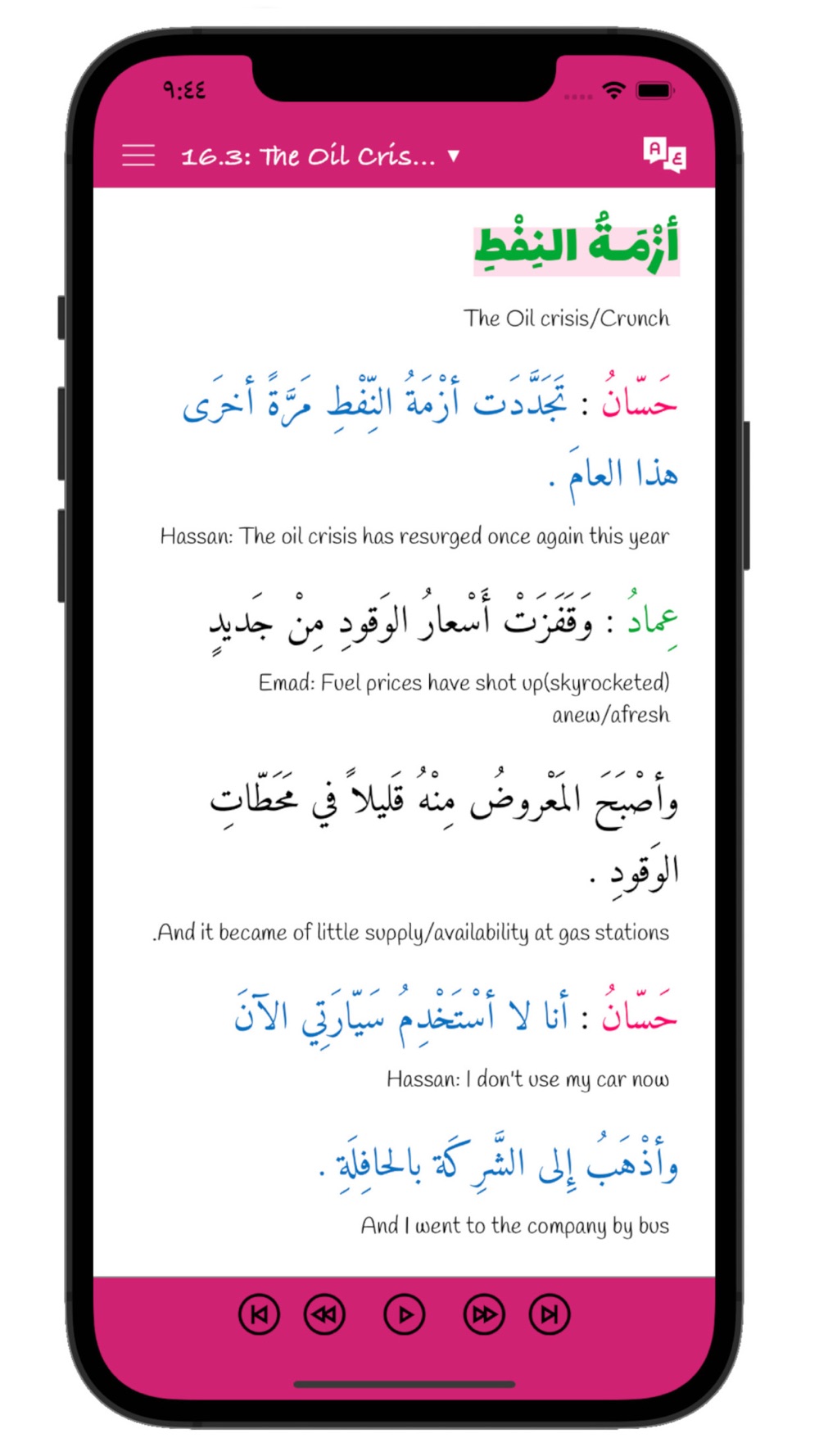 Learn Arabic on the Go with numerous High Quality Arabic Audio synced with text, guaranteed to keep you engaged and focused in any situation.