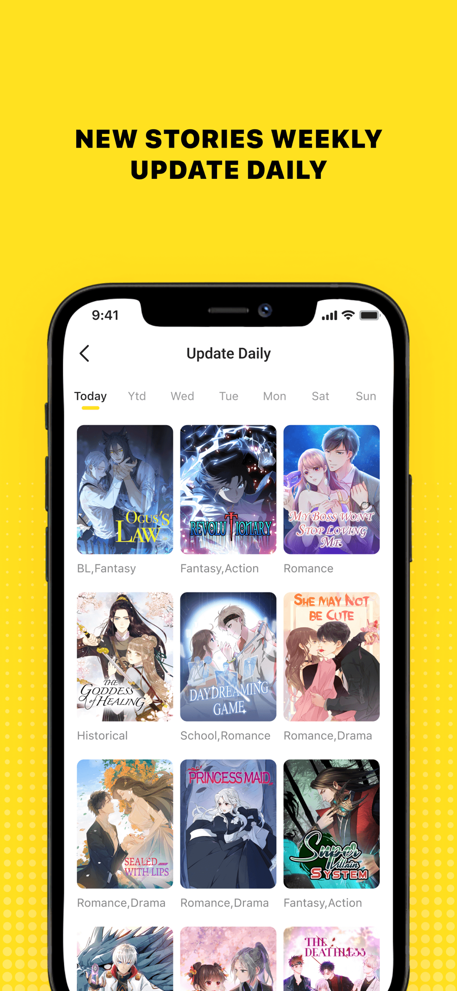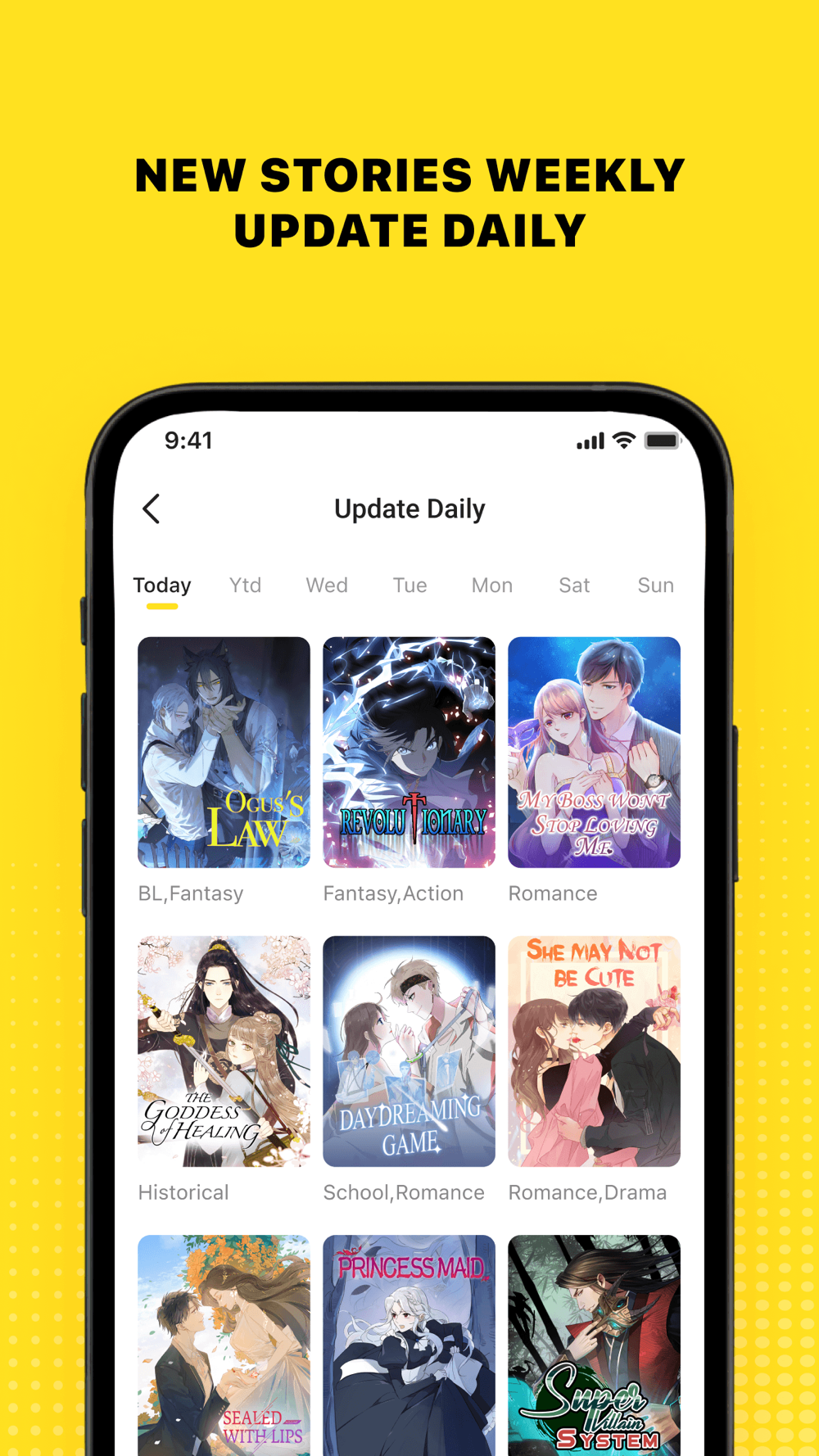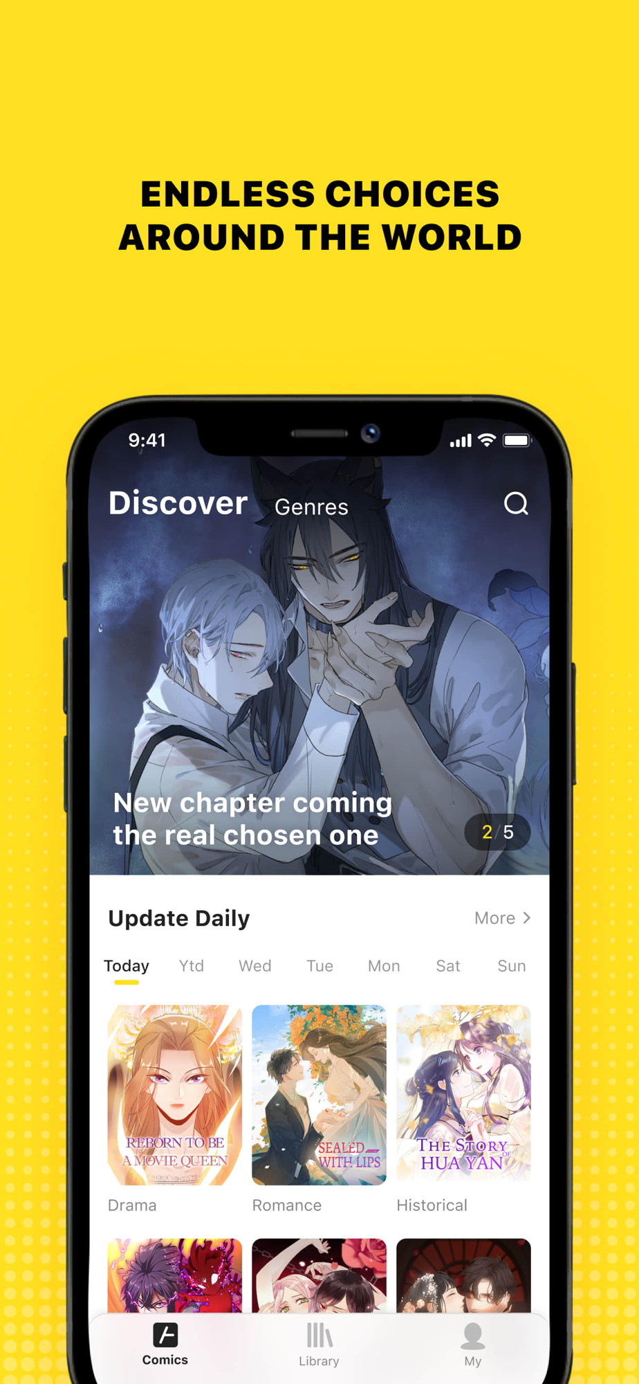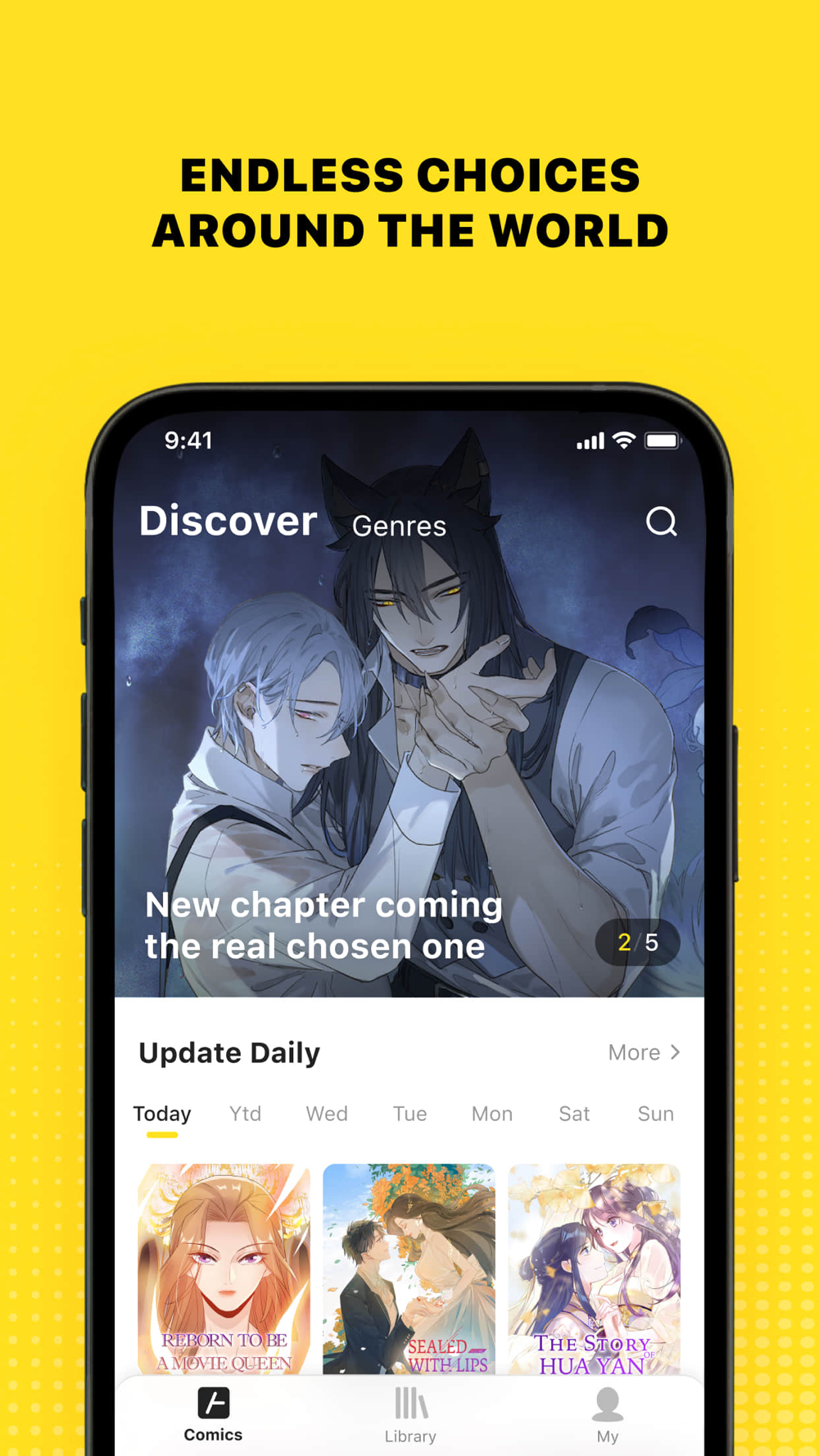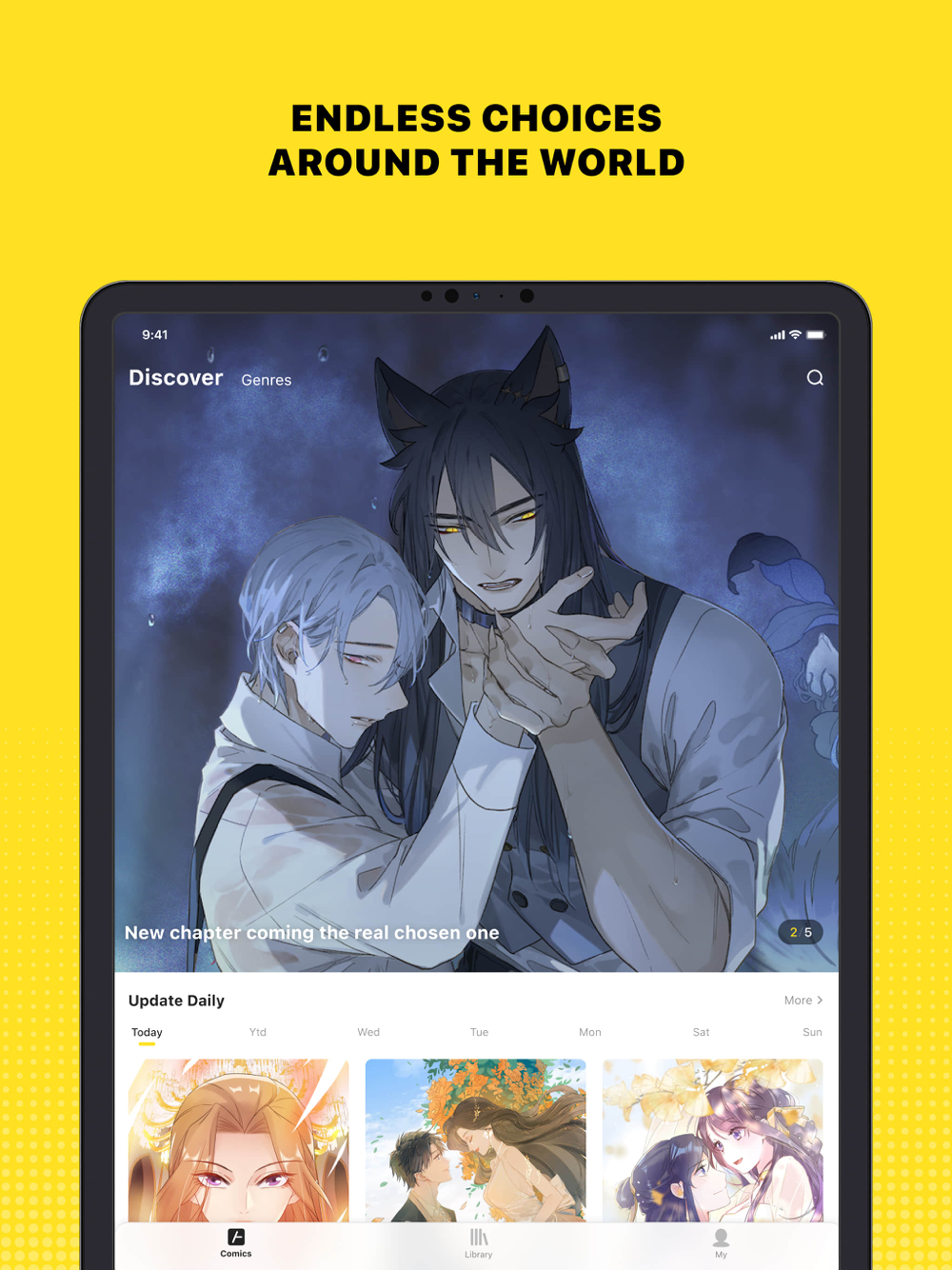 4. Discover good works in Daily, Genres, and Library, or search titles, and your favorite works will come in handy.