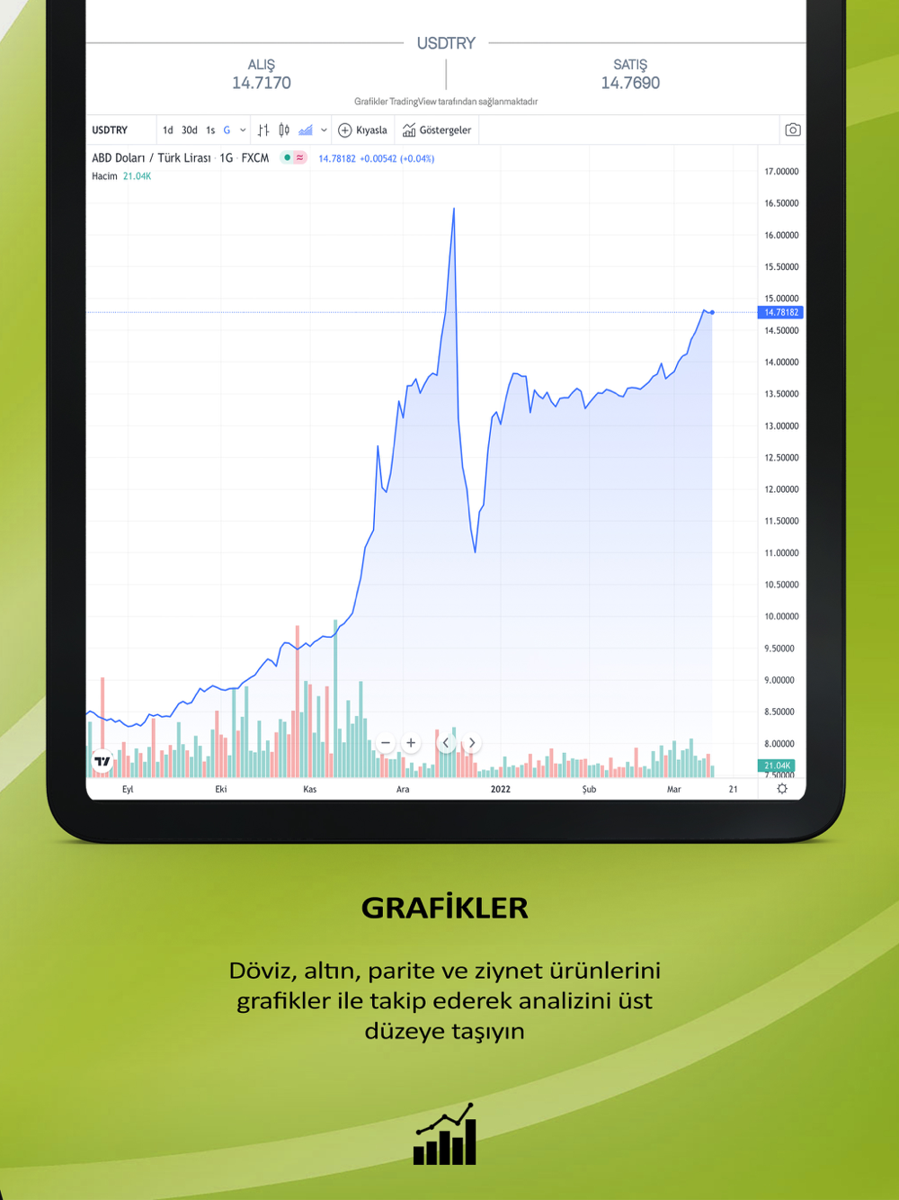 Döviz , altın , parite ve ziynet ürünlerini grafik ile takip ederek analizini üst düzeye taşıyın.