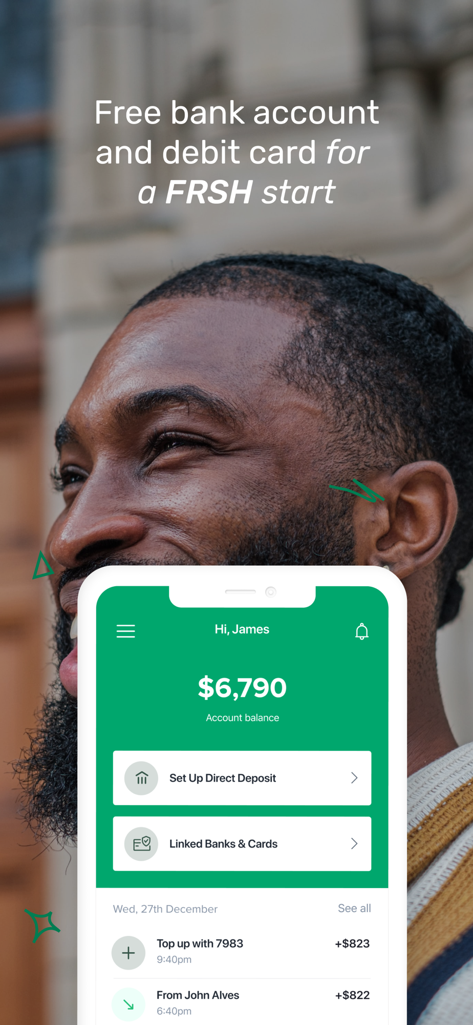 You deserve a fresh start! FRSH believes that everyone has the right to a free bank account and debit card no matter what you have done in your past. FRSH is the free banking app that provides you ACCESS to all the financial tools and technology that everyone else takes for granted.