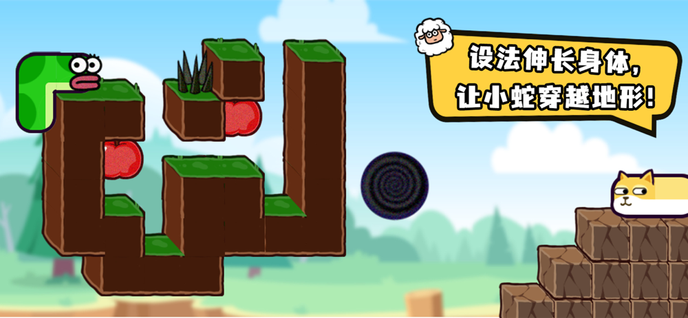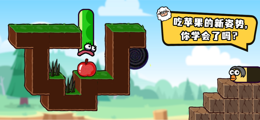 快来让带领这条爱吃苹果的蛇找到自己爱吃的食物,通往下一关吧。