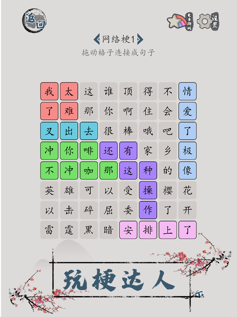 这是一款发挥想象才能顺利过关的汉字解谜游戏,每关都有不同的解法,这里有字中找字,连接汉字梗或流行语,拼句子等多种玩法,能够让你了解中华文化和汉字魅力,快来挑战一下吧