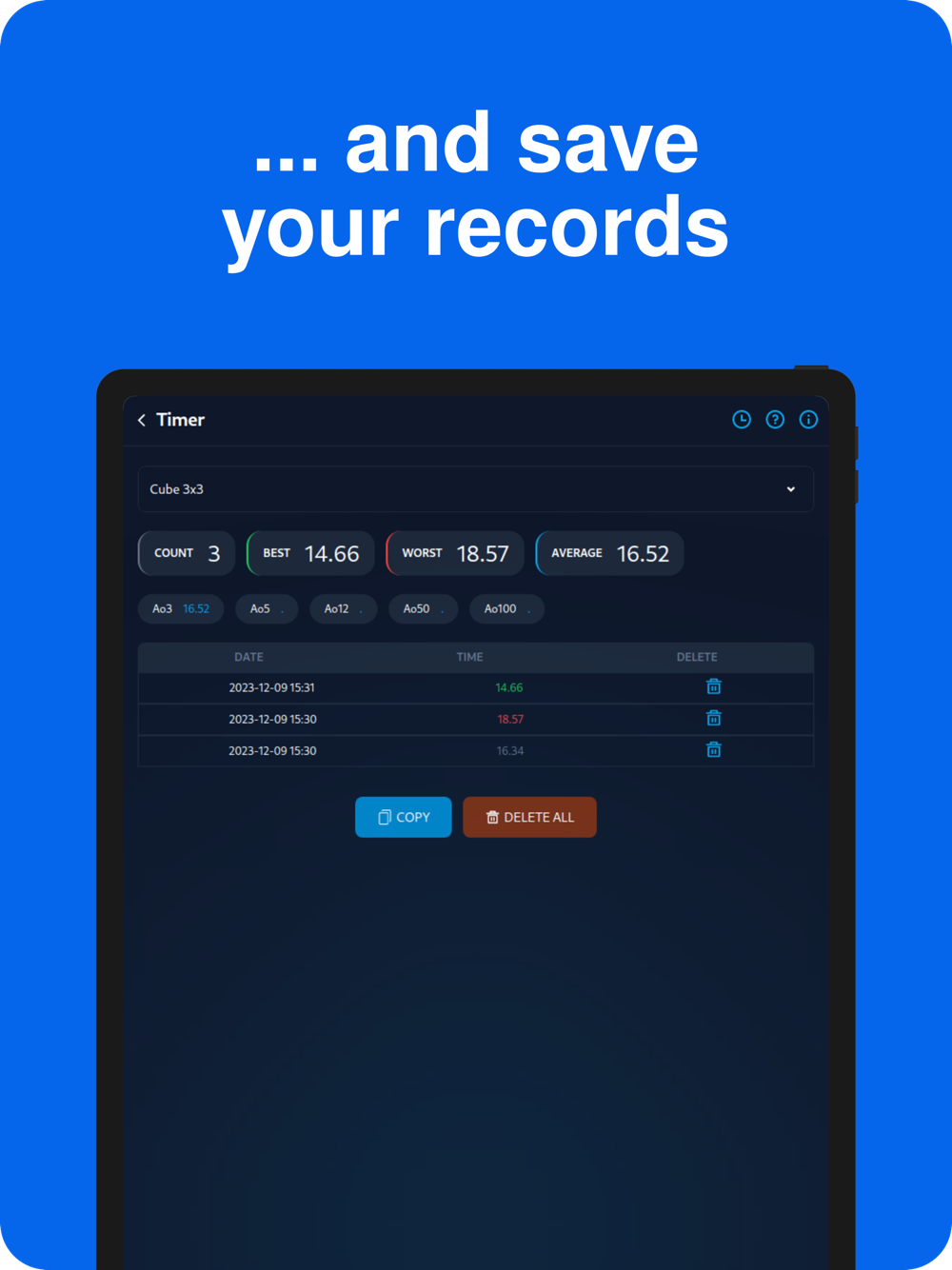 Practice solving your puzzle as fast as possible with random shuffling and a timer with full statistics (SpeedCubing).