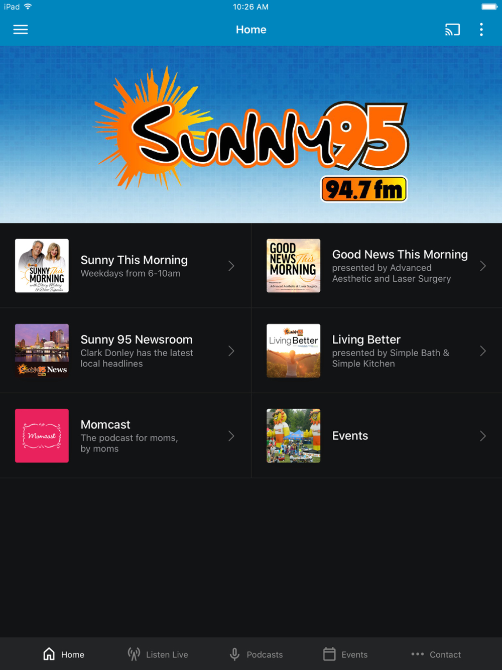 Thank you for downloading the official Sunny 95 app! From here, you can stream the station and keep up with everything going on in Columbus!