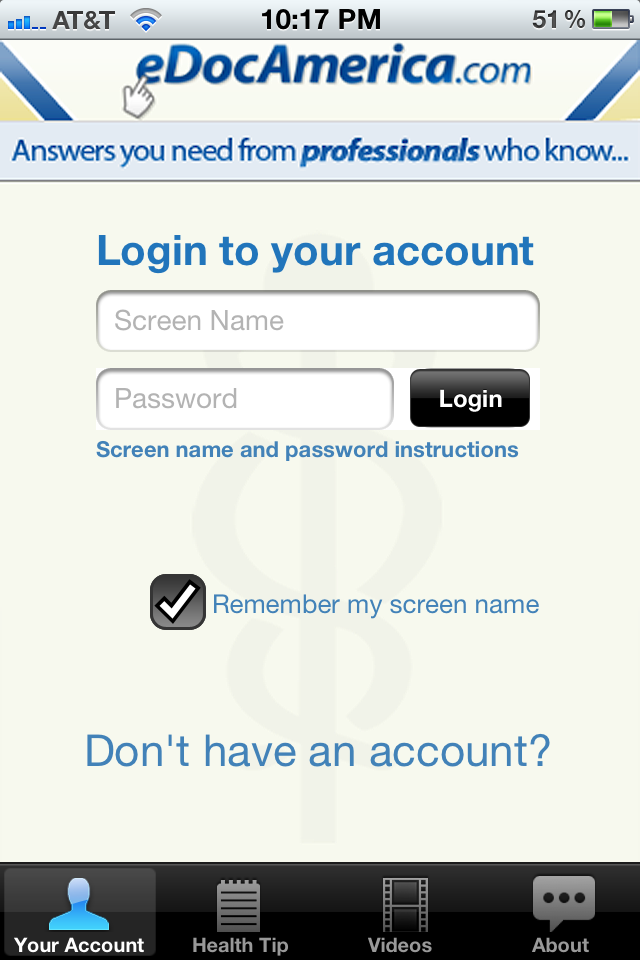 The app also provides users access to various other eDocAmerica tools including the Weekly Health Tip, eDoc Voice, Nurse Line, Customer Service, and more. It is completely free for our users and provides them a new, convenient access point to get the answers they need from professionals who know.
