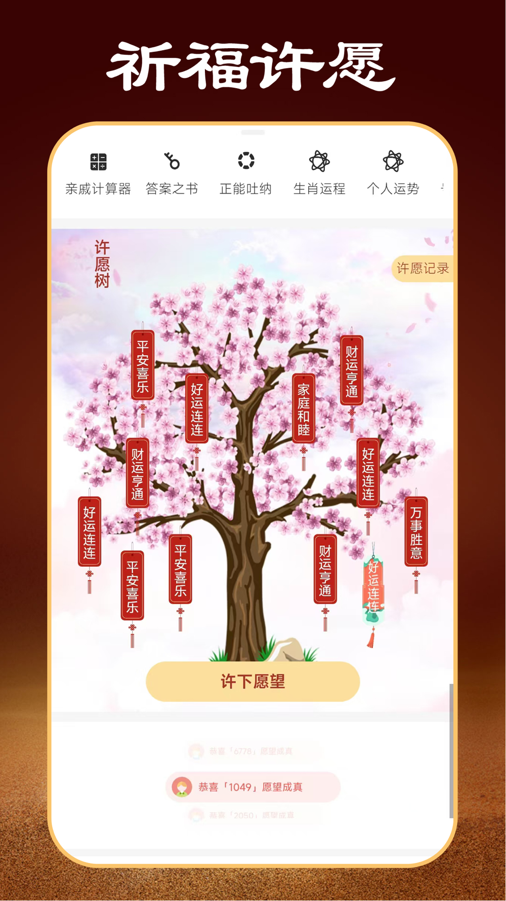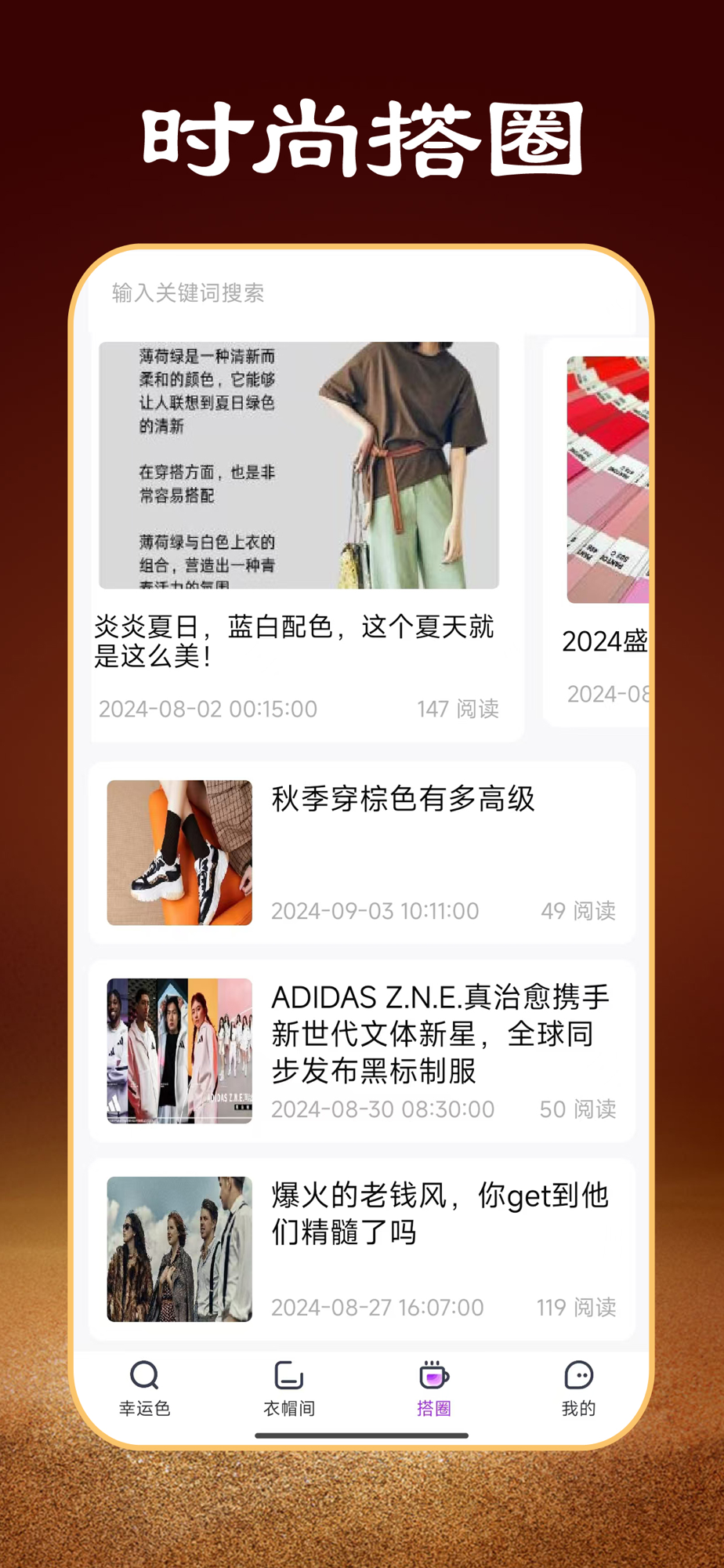 每日幸运色彩穿搭、幸运饮食推荐,专属AI智能衣橱,场景随心搭配,帮助人们通过衣着色彩、日常饮食等调节自己的气场与能量,让每天更加顺心如意。