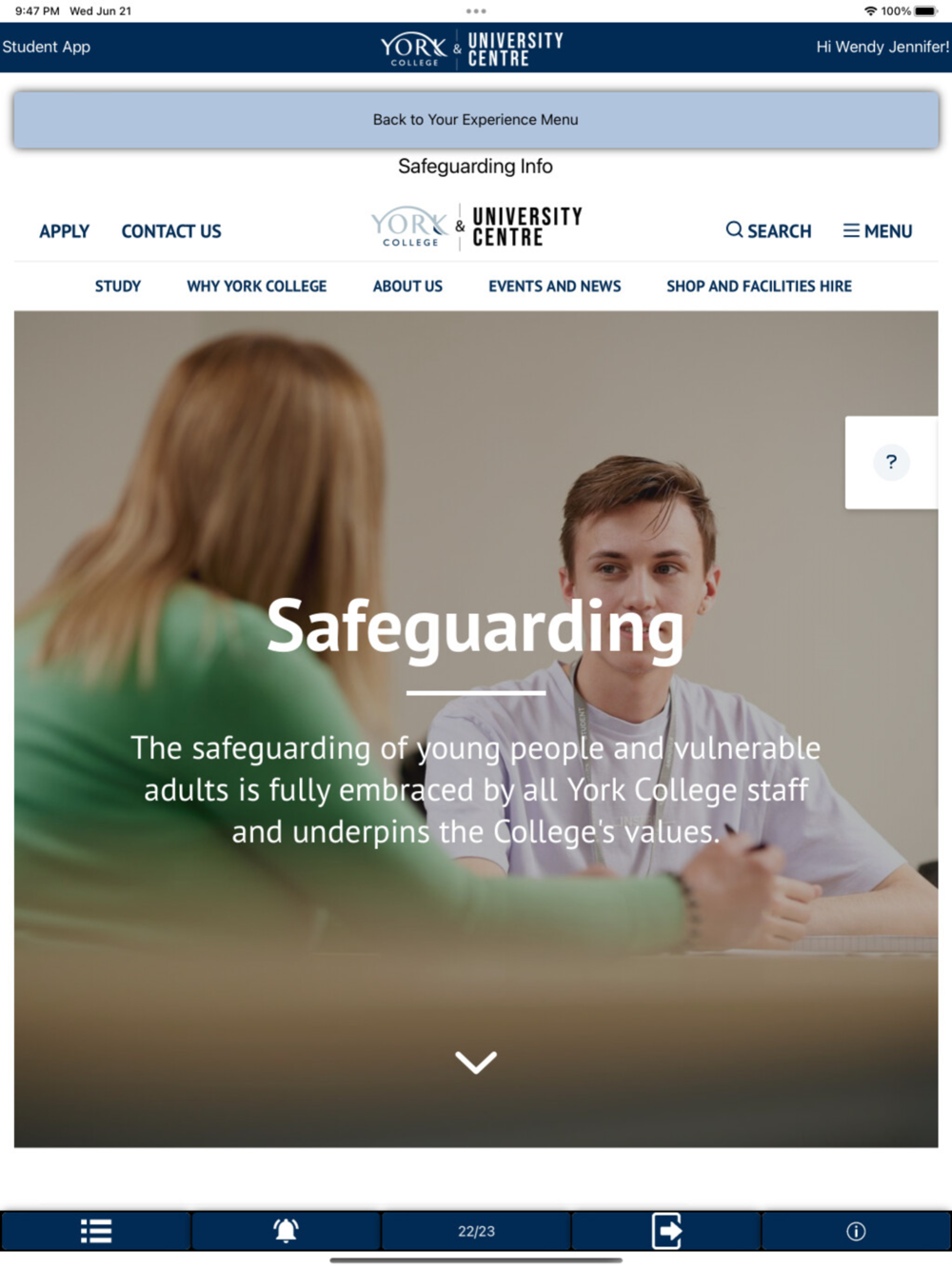 The York College & Uni Centre App provides a personalised dashboard platform for students and their parents/guardians to easily access useful college/course information.