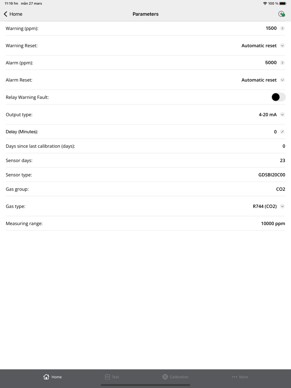 • Configuration of the gas detector, including setting alarms levels, alarm behaviour, configuration of digital and analogue outputs