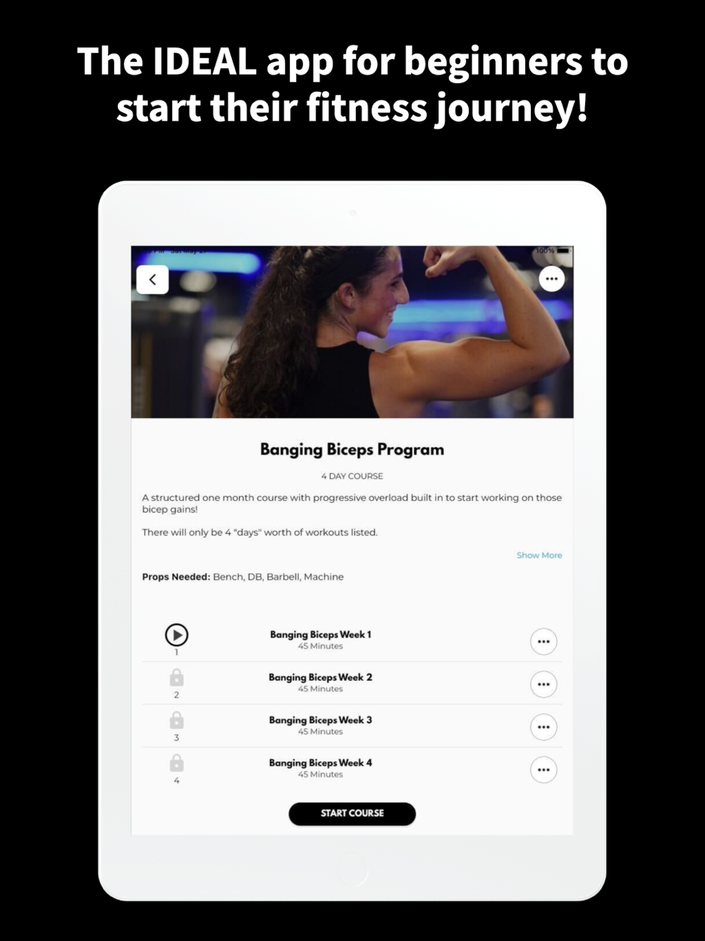 This is the only fitness app specifically designed for beginners to get started in the gym (or at home) and build up the confidence to stick with their journey and achieve their fitness goals. It will include different workout split options and the option to do either at home or gym workouts. There will also be on demand workouts for each muscle group that switch out monthly.