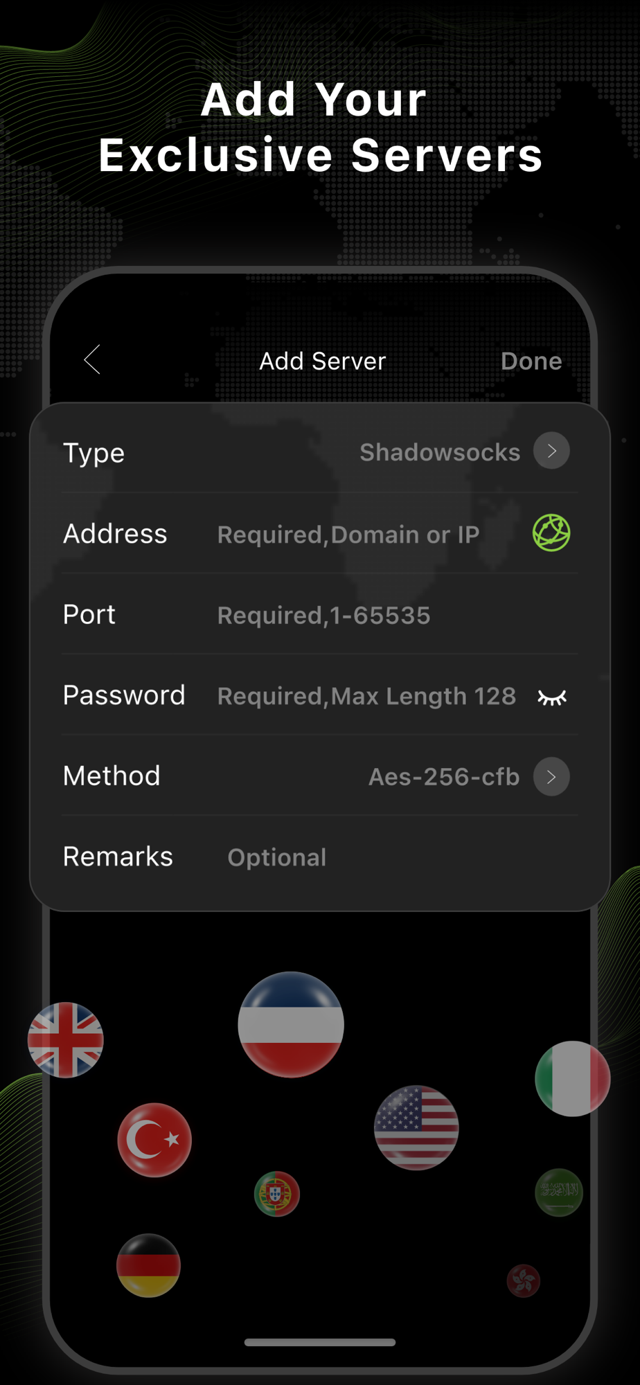 - Custom proxy support for Shadowsocks, Trojan, HTTP, and Socks5.