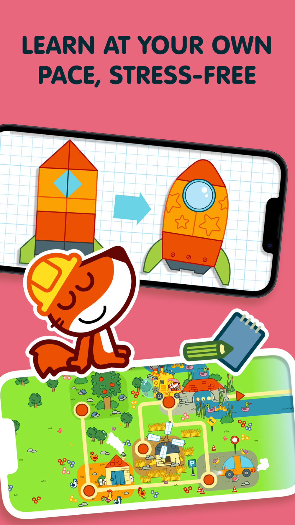 Our intuitive, progressive games allow children to discover and interact independently. With no stress, time constraints or scores to reach, they can explore and learn code at their own pace.