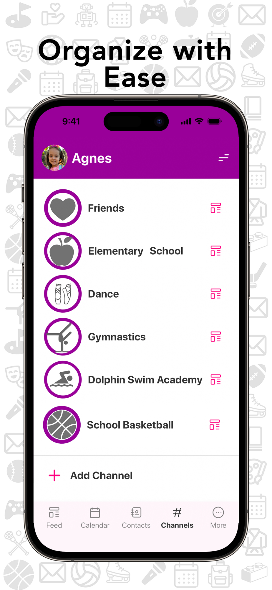 Get Cubby gives busy families one source of truth for messages, events and contacts. All are tracked based on the different activities your children partake in.