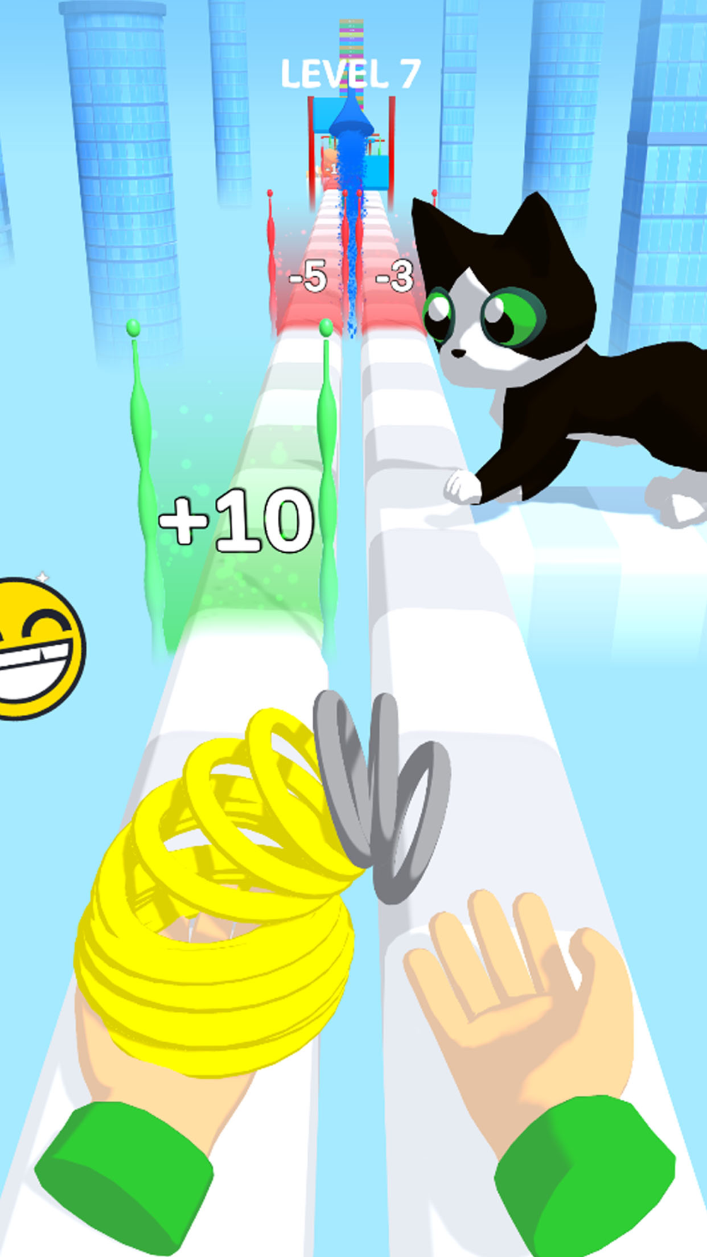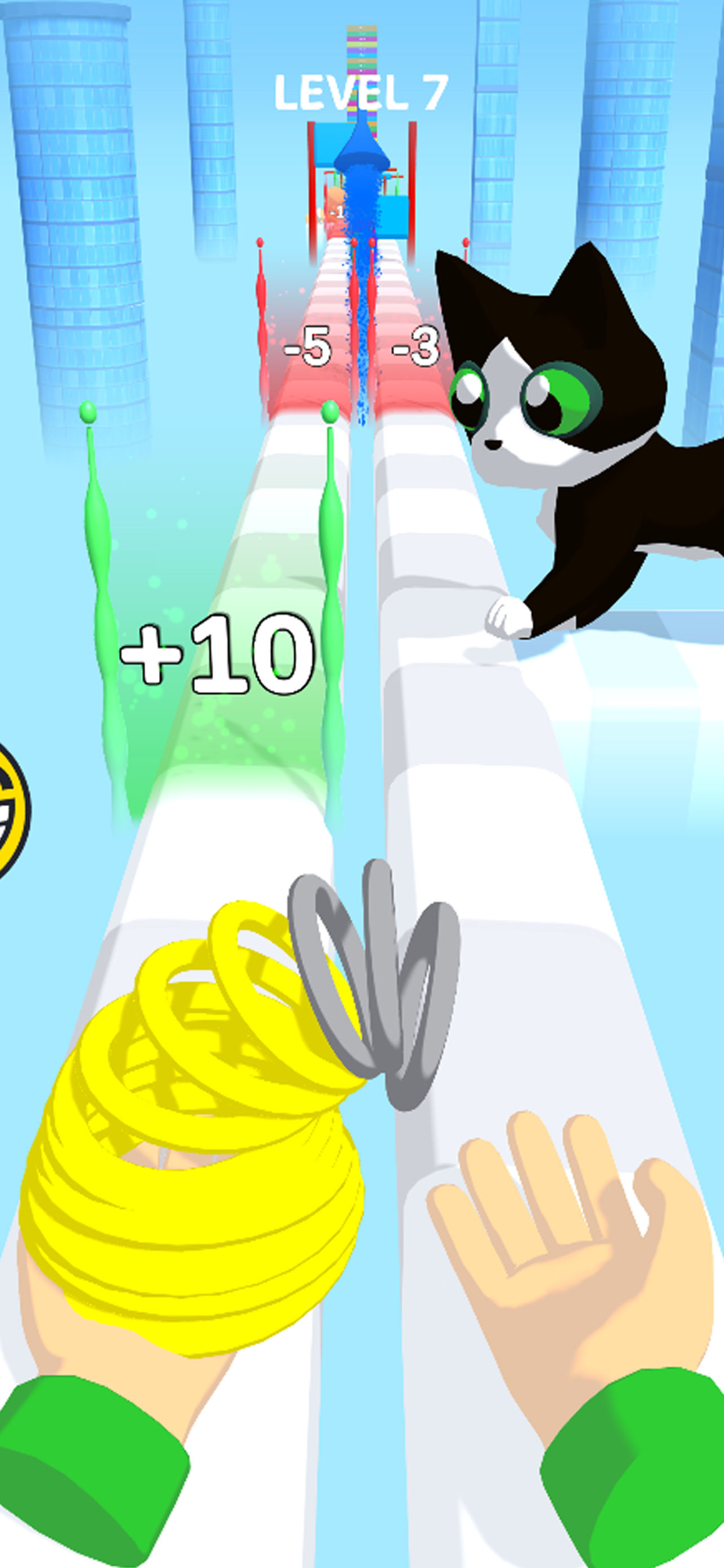 Get ready to spring into action with ToySpring! This exciting game will have you collecting colourful spring pieces and stretching your toy spring to its limits. But beware, there are obstacles in your way that will test your skills - from mischievous cats to playful babies and spinning tops.