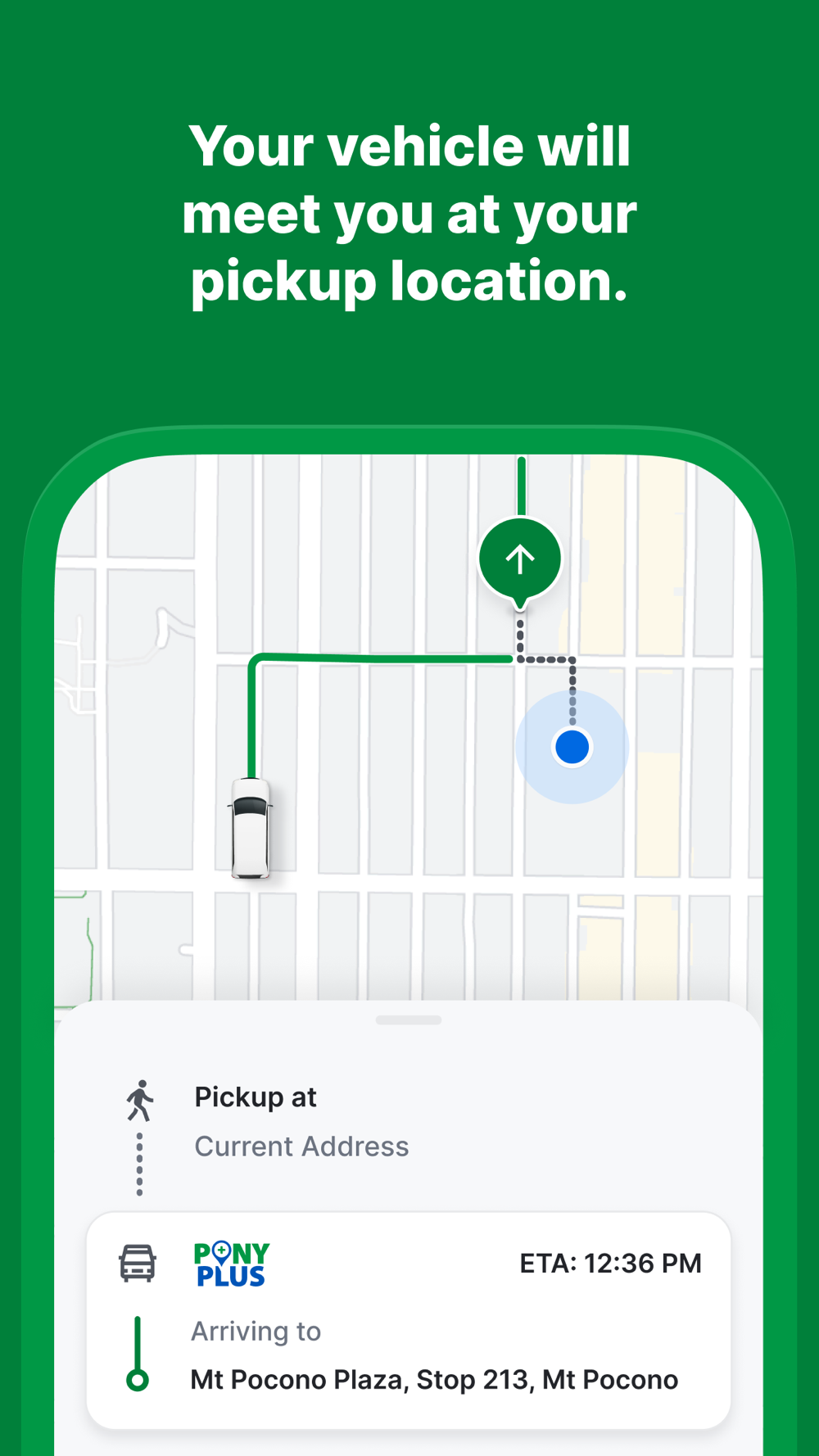 Book now. Ride now. Public transit that comes to you. Short $2 rides. Pocono Summit / Mt. Pocono and Eastburg / Stroudsburg / DWG areas of Monroe County, PA. PonyPlus is a service of the Monroe County Transportation Authority, aka Pocono Pony. Get to work. Meet friends. Go shopping. We have the wheels you need.