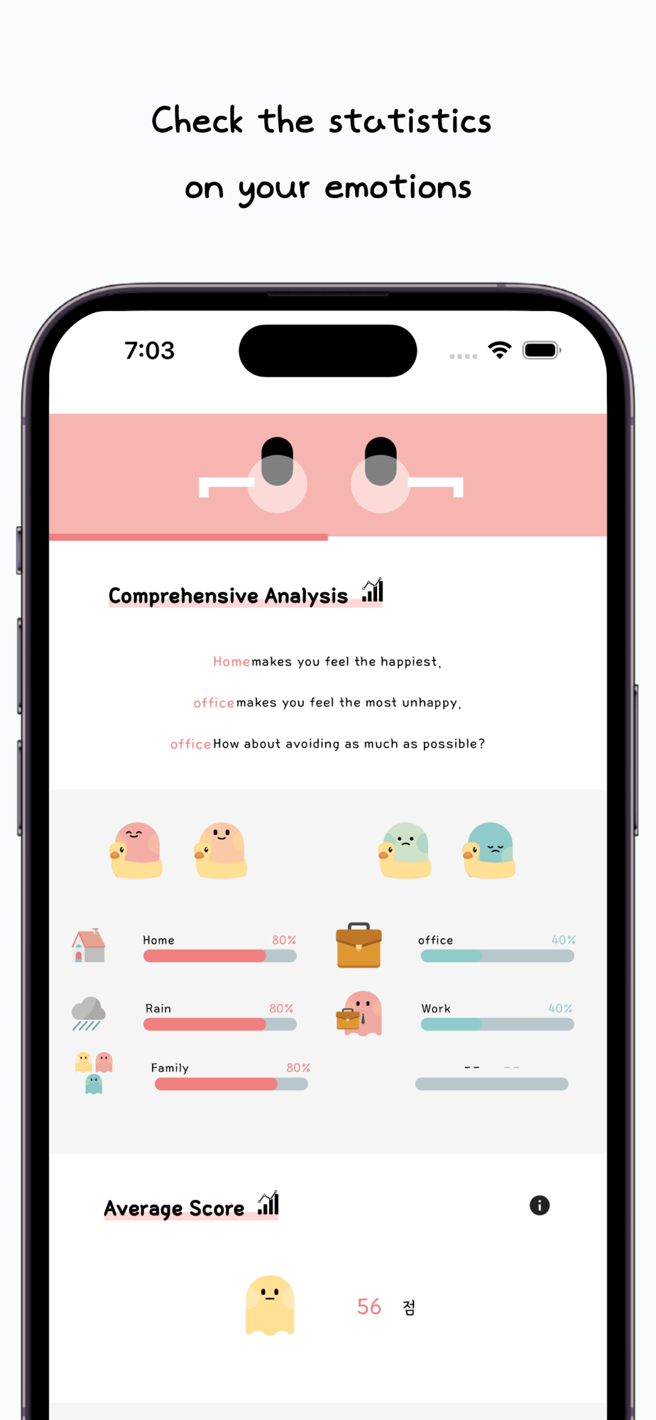 Check the statistics on emotions and activities recorded.