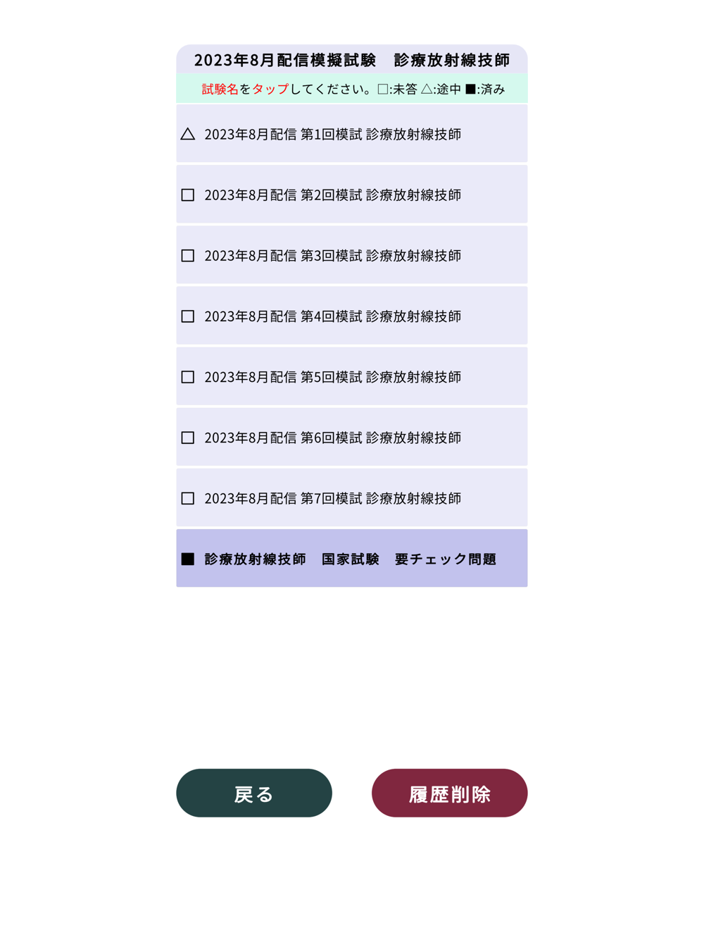 ②正解・不正解の履歴が残ります。