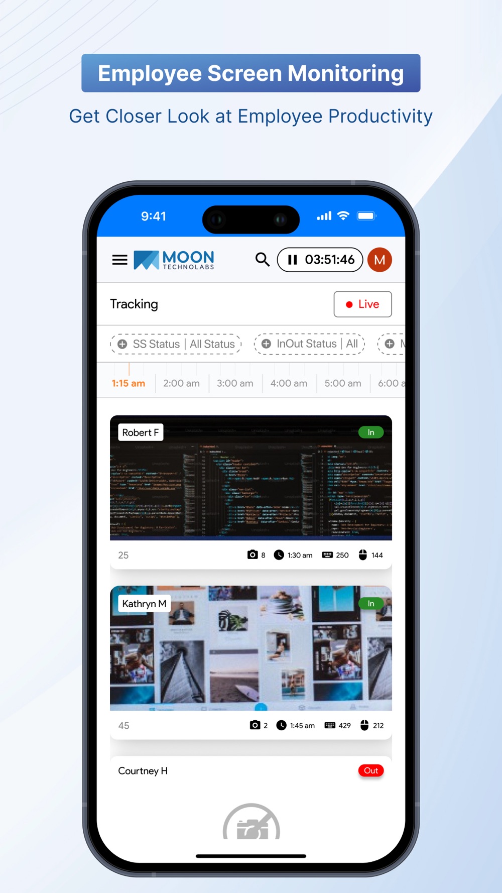 Experience remote work management with a clock-in-out feature