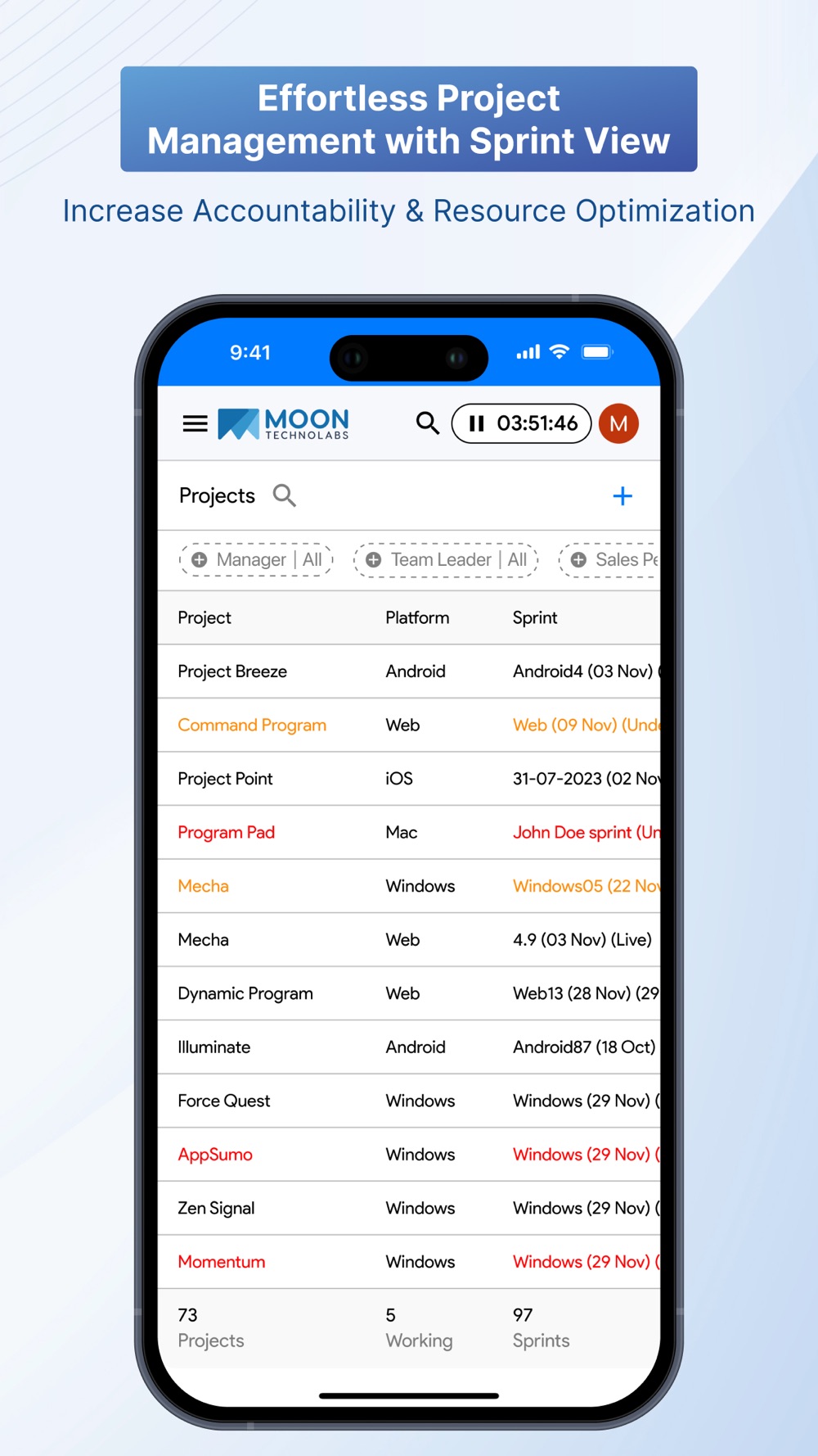 Sort projects by list, summary, or sprint view