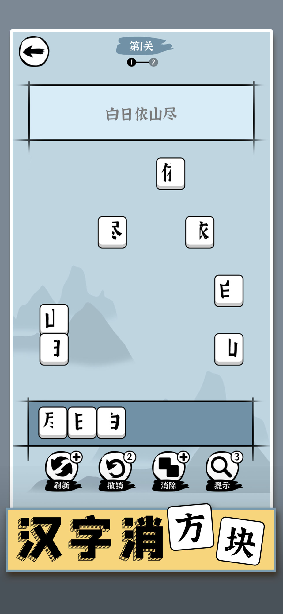 这是一个组合汉字并消除古诗词的游戏,游戏规则为将两个方块组合成一个汉字,即可消除诗词中的一个字,游戏有丰富的关卡,并且挑战不断升级,快来挑战一下吧。